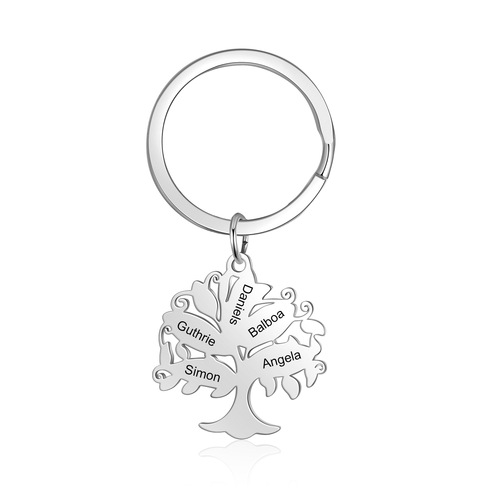 Porte-Clés 4 prenoms Personnalisé Avec Breloques Arbre généalogique Arbre de Vie