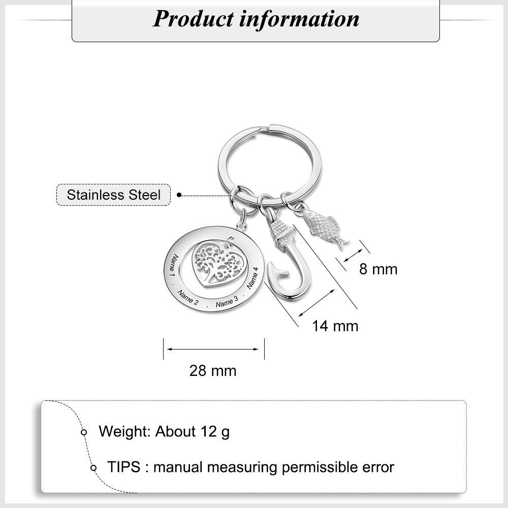 Porte-Clés 4 prenoms Personnalisé Arbre généalogique Arbre de Vie Et Poisson