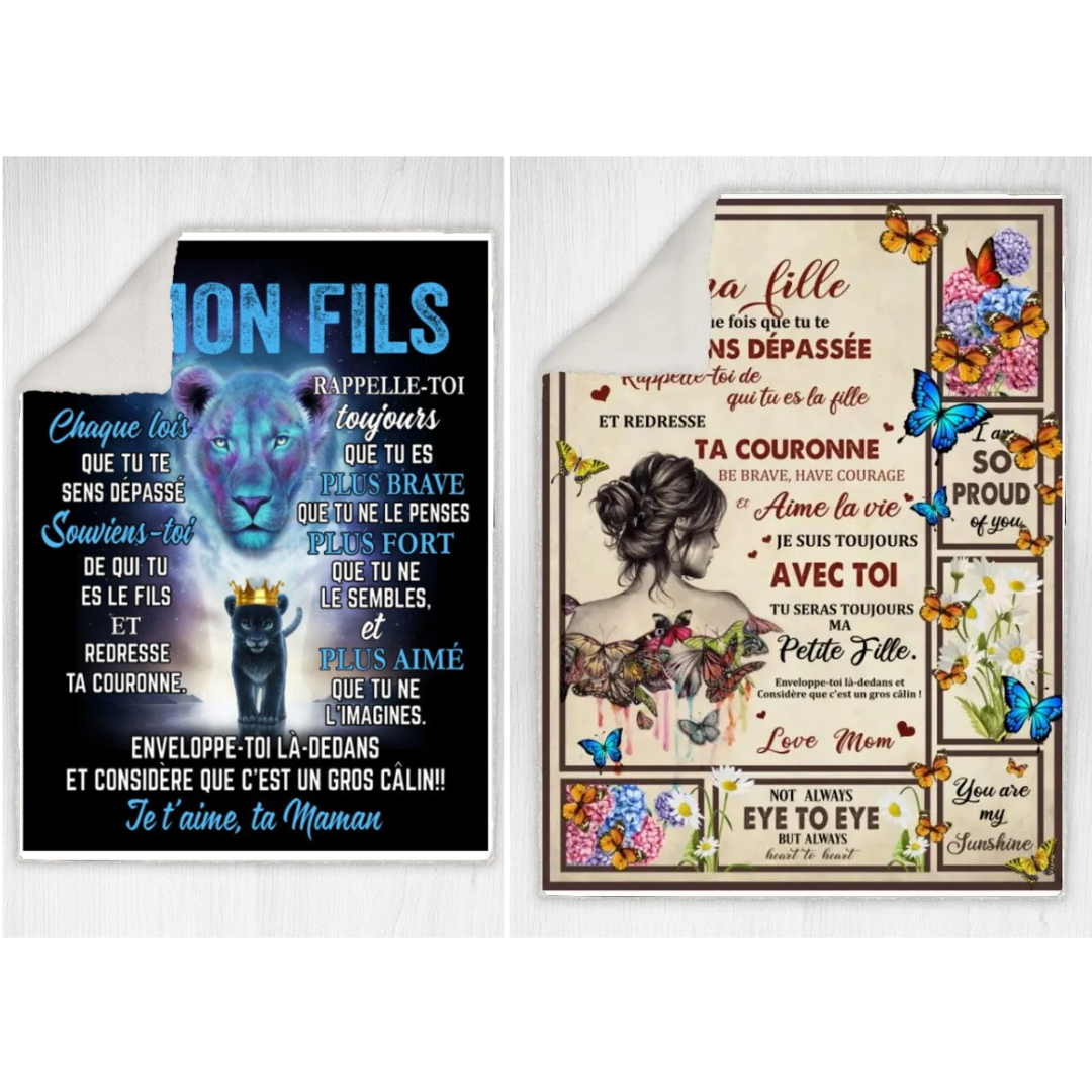 Couverture plaids polaire 2PCS À ma Fille+ À mon Fils