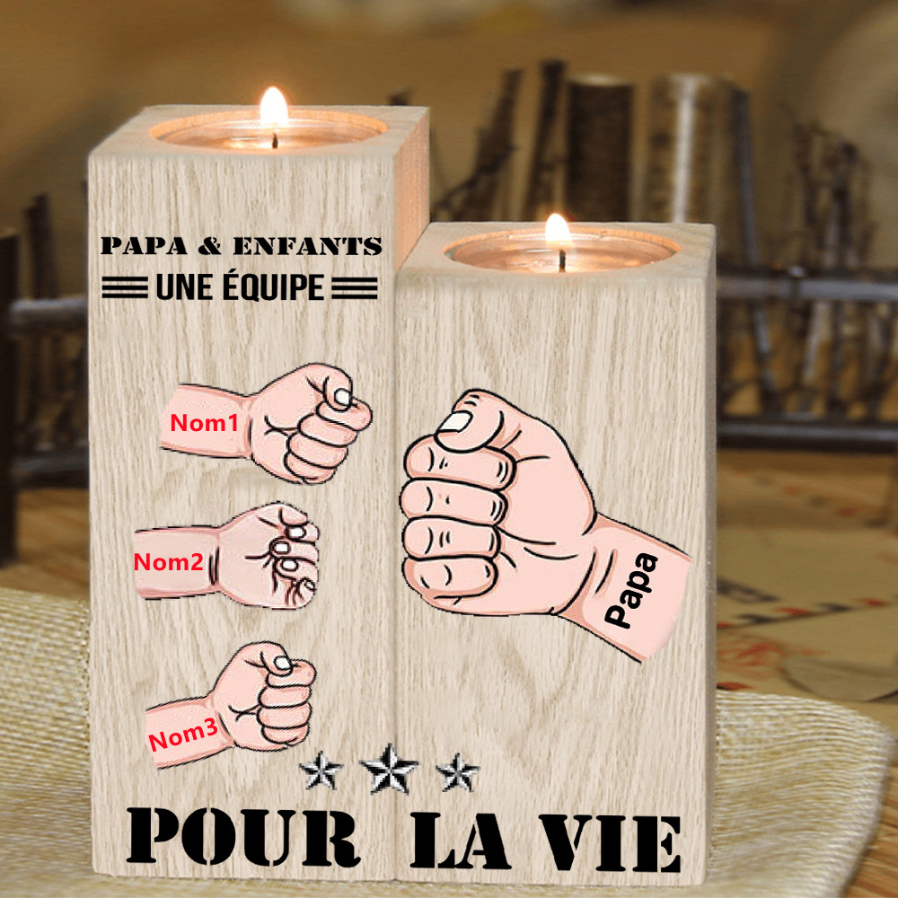 À Mon Papa - Bougeoirs en Bois sans bougie Poings 3 Prénom Personnalisé