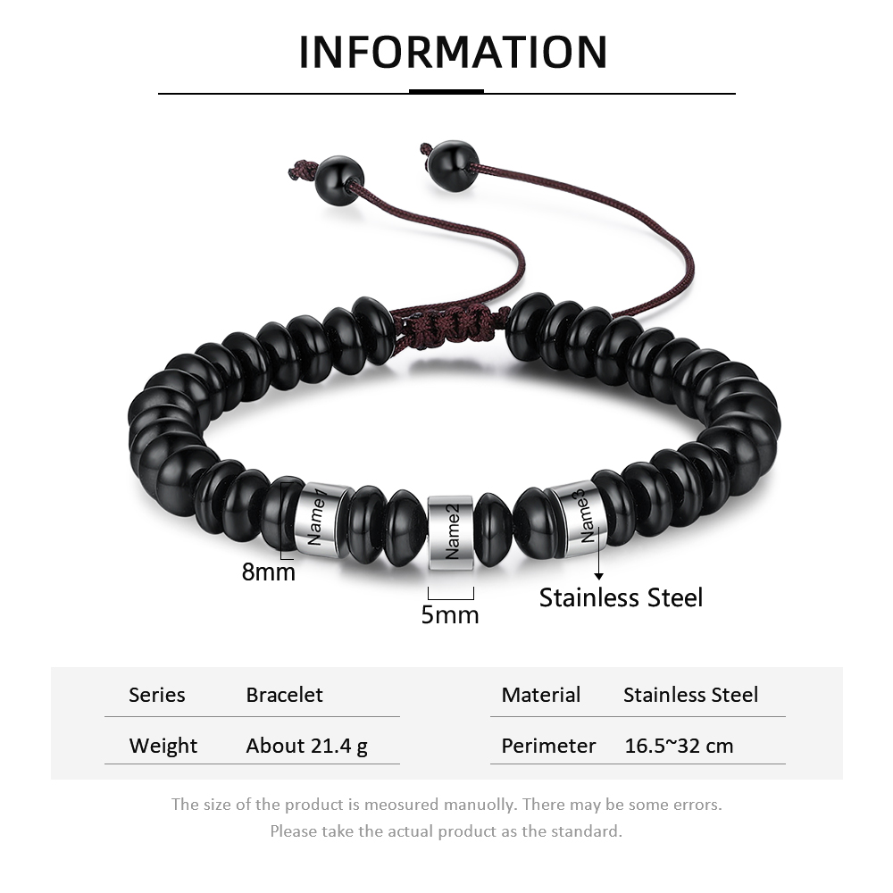 Bracelet 4 Prénom Personnalisé Perles noires Bracelet Homme