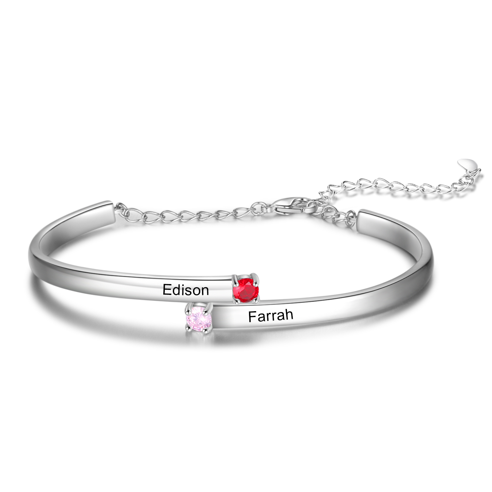 Bracelet 2 Prénom Personnalisé avec 2 Pierre de Naissance