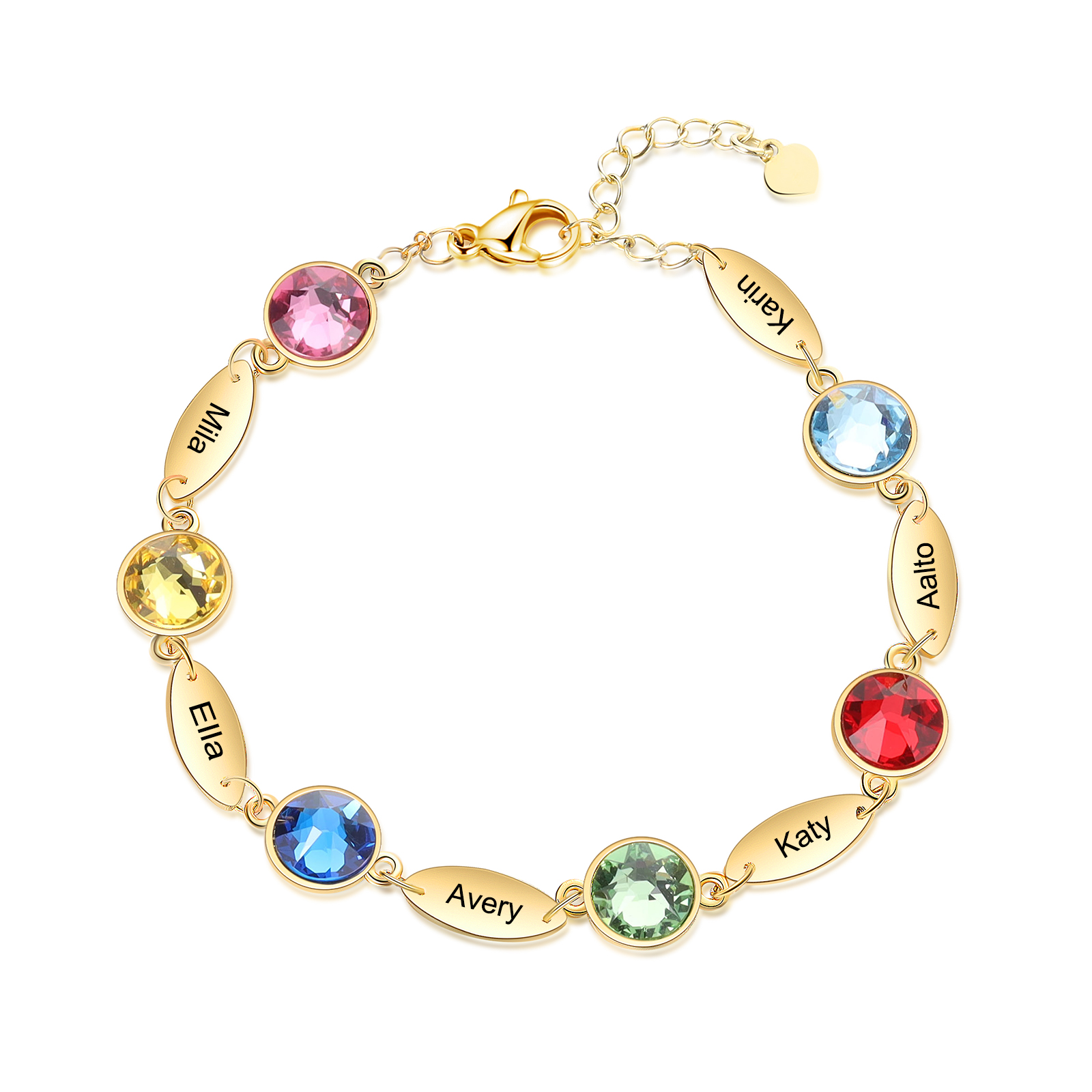 Bracelet Breloque 5 Prénoms Personnalisés avec 5 Pierre de Naissance pour Femmes