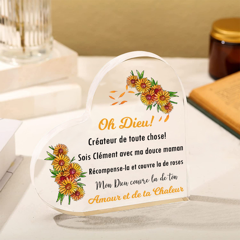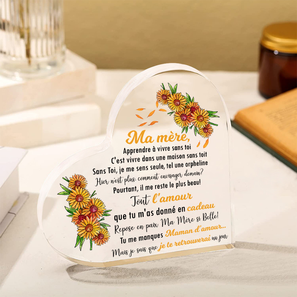 À Ma Mère-Plaque Acrylique Commémorative en Forme de Cœur Plaque Funéraire
