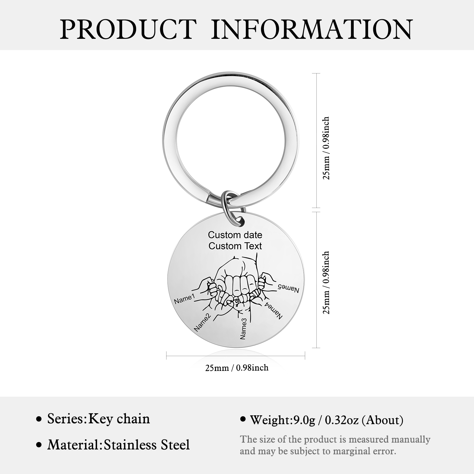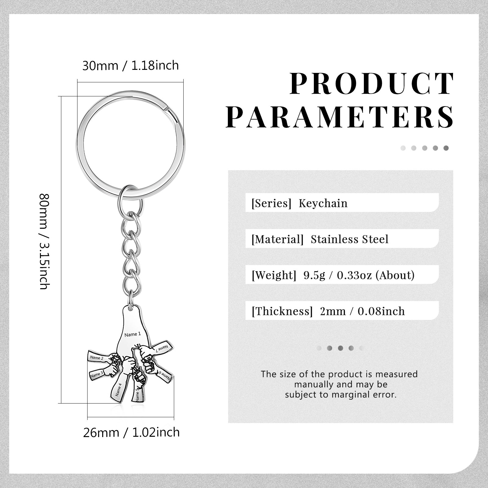 À Papa/Papi - Porte-Clés Poings 7 Prénoms Personnalisés | Cadeau Fête des Pères | Jessemade