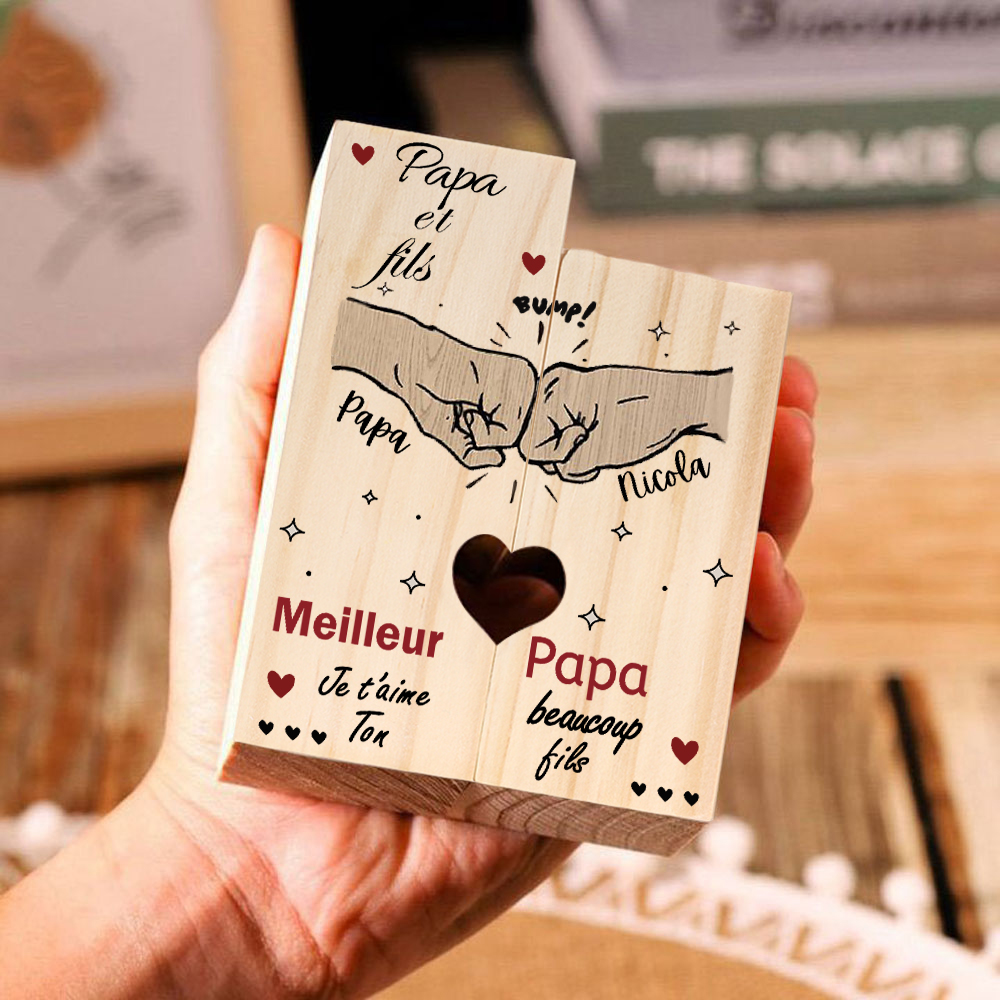 Papa et fils - Bougeoirs en Bois sans bougie 2 Prénoms personnalisé