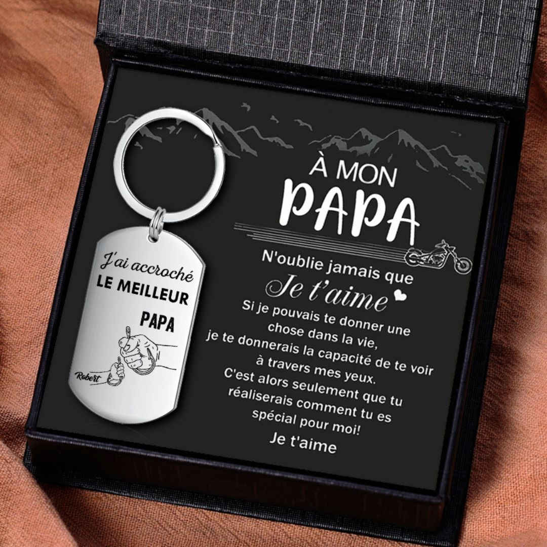 À mon Papa-J'ai accroché le meilleur Papa Porte-Clés 1 Prénom Personnalisé