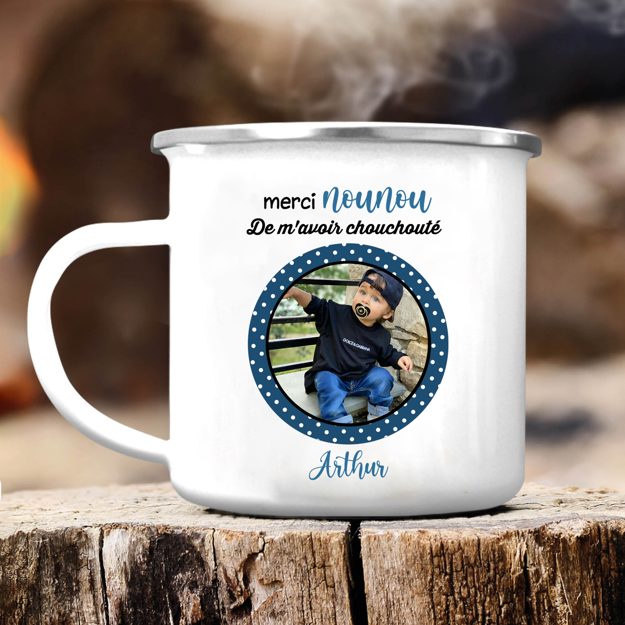 À Ma Nounou - Tasse émaillée Prénom et Photo Personnalisés