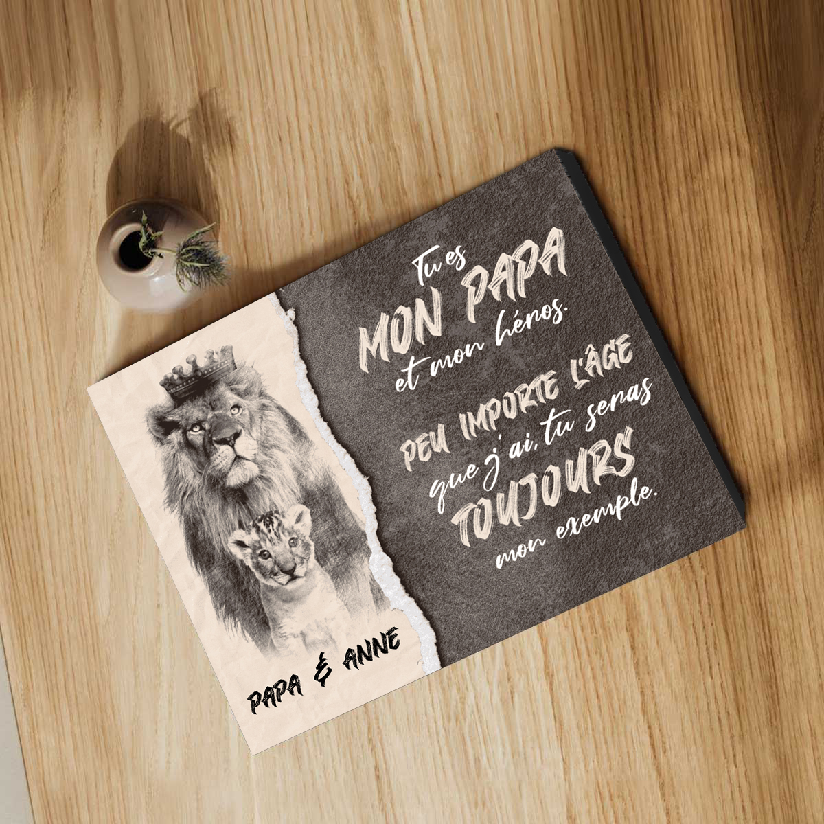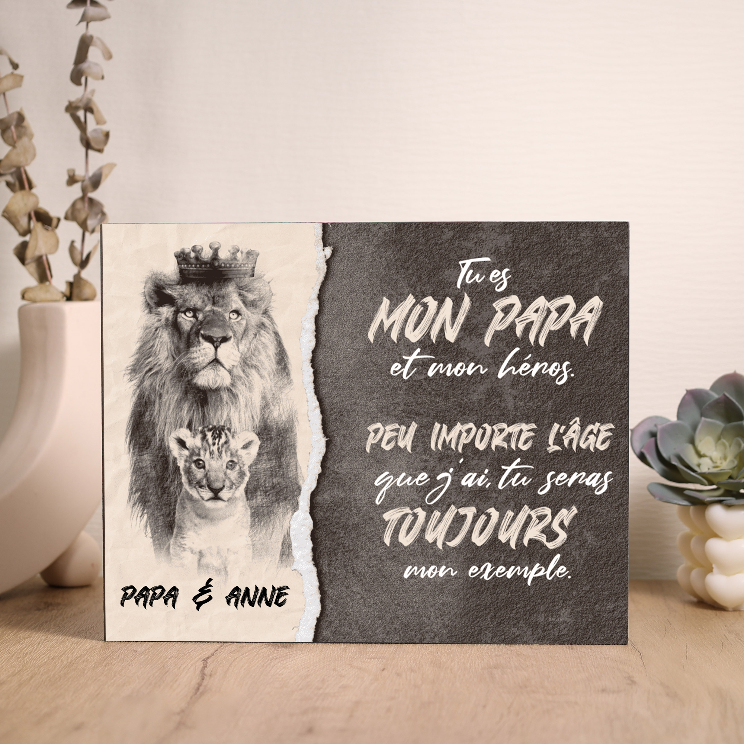 À Mon Papa-Cadre imprimé en bois avec lion 1 Texte personnalisé