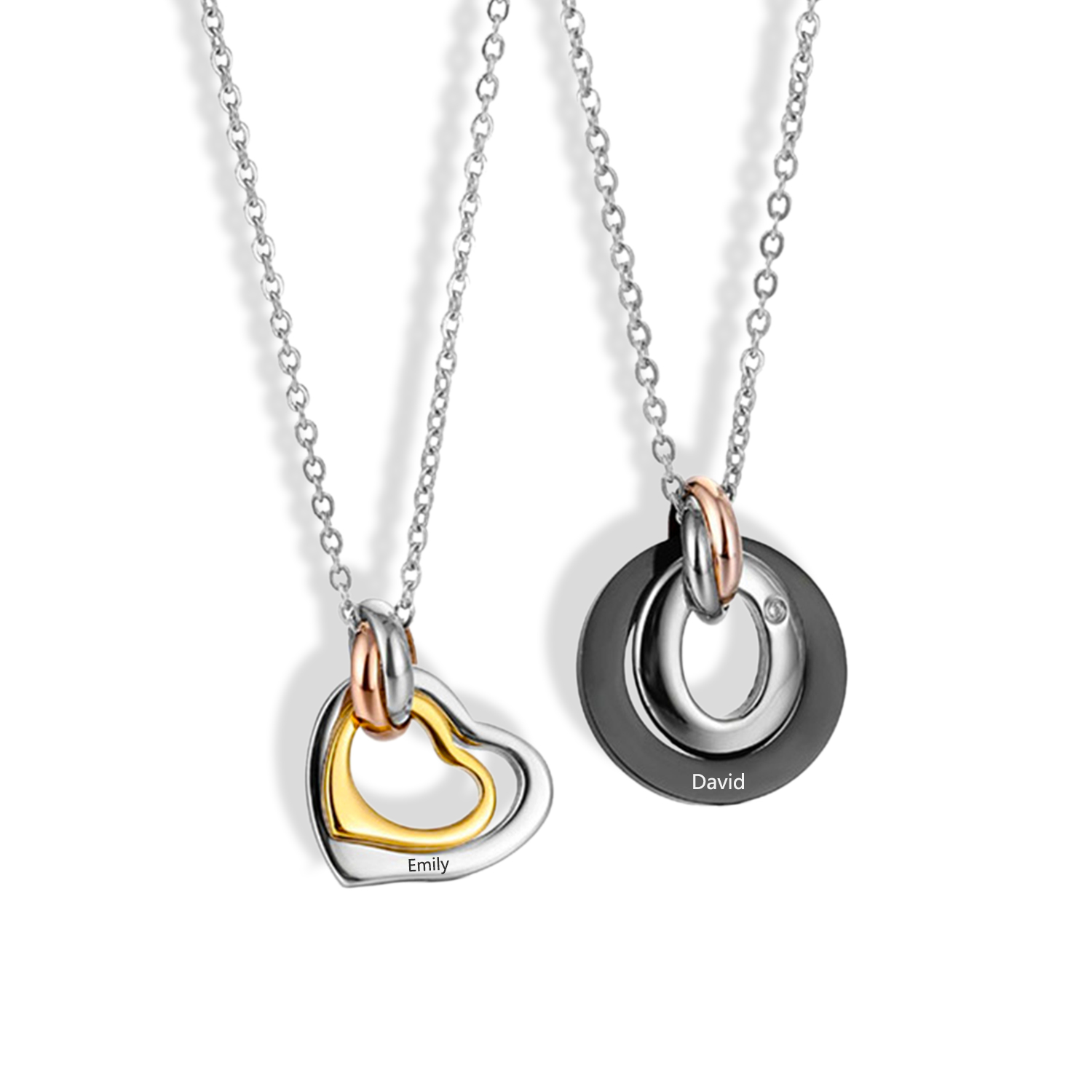 Collier breloque Coeur 2 Prénoms personnalisée pour Couple pour Couple | Jessemade