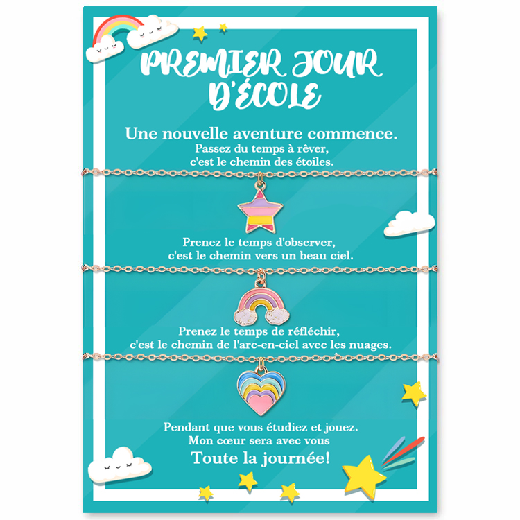 3PCS Ensemble de Colliers Étoile et Arc-en-ciel et Cœur - Cadeau Rentrée Scolaire Premier jour d’école