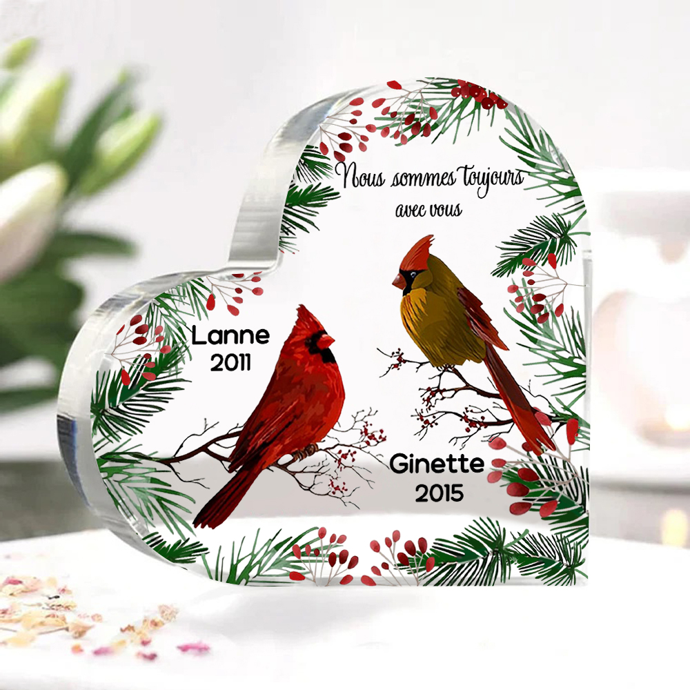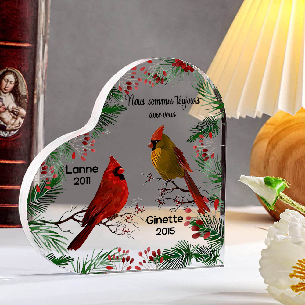 Plaque Acrylique Commémorative en Forme de Cœur 2 Prénoms Personnalisés avec 2 Années