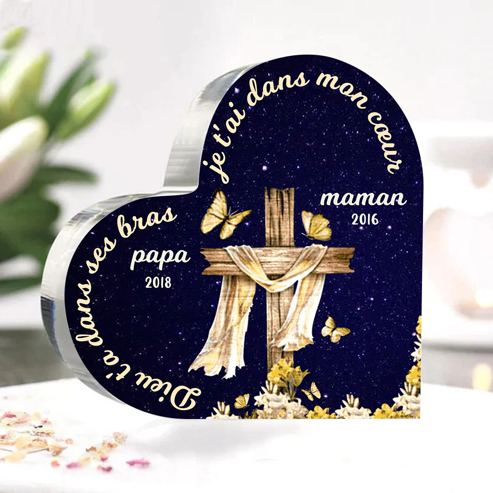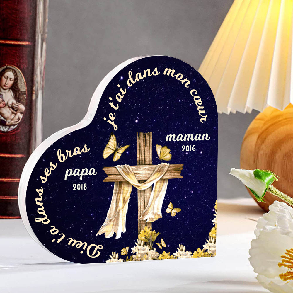 Plaque Acrylique Commémorative en Forme de Cœur 1 Prénom Personnalisé avec Années