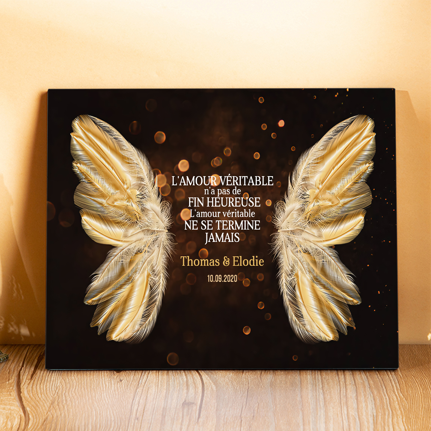 Cadre en Bois Papillon 2 Prénoms Personnalisés avec Date pour Couple Cadeau Saint Valentin