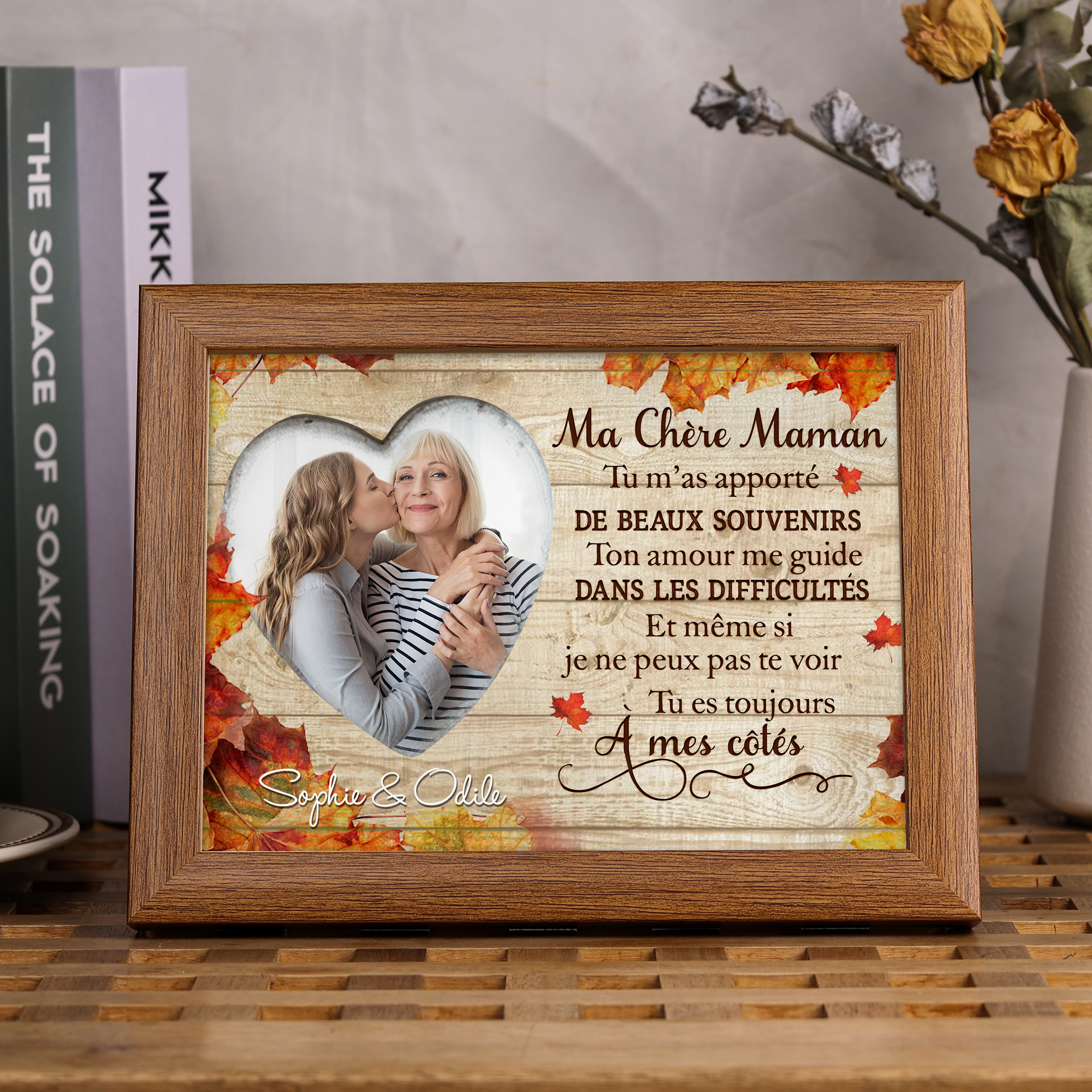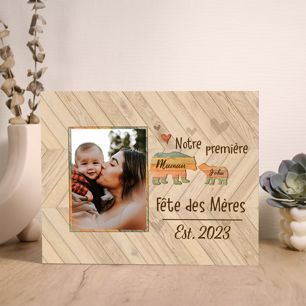 À Ma Maman-Cadre imprimé en bois 2 Prénoms personnalisés avec photo et date