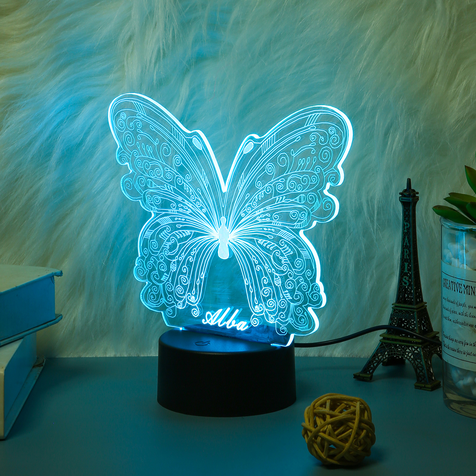 Lampe de chevet LED Lumières Papillon Prénom personnalisé