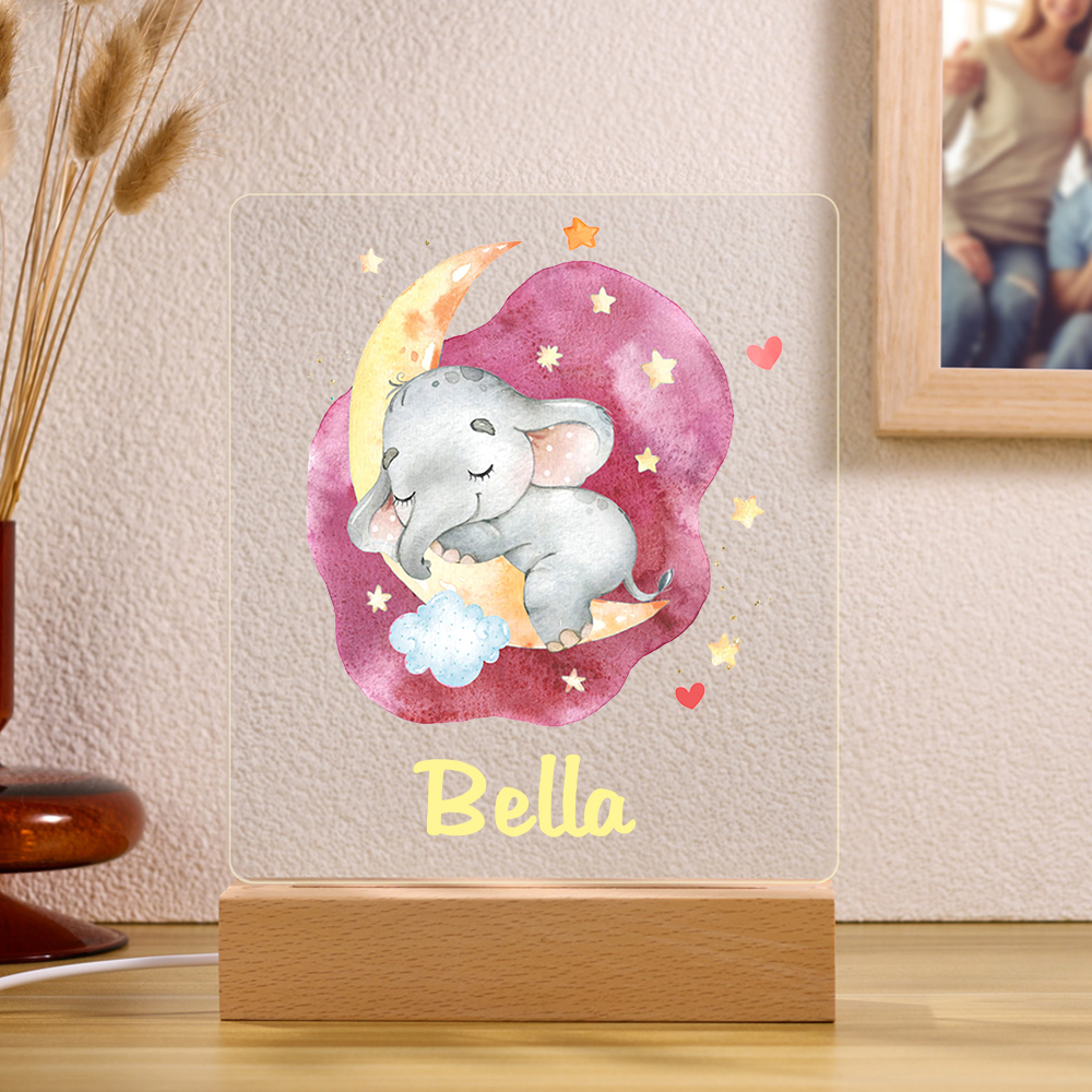 Lampe de Chevet LED Éléphant 1 Prénom Personnalisé
