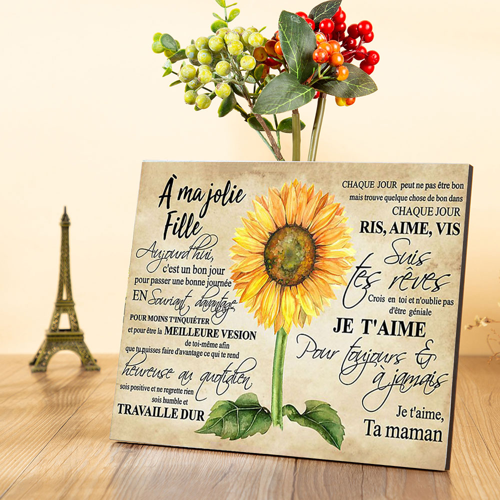 À ma jolie fille - Ta maman - Cadre en bois tournesol
