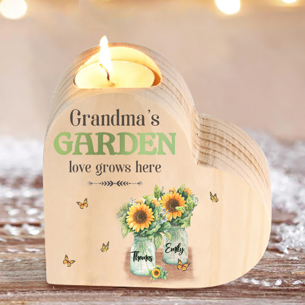 Bougeoir en Bois 2 Prénoms Personnalisés avec Texte sans bougie