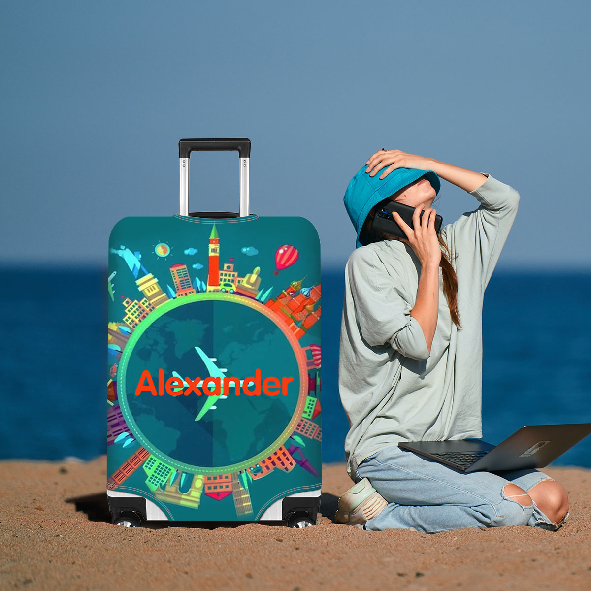 Housses de Valise Tour du Monde 1 Prénom Personnalisé