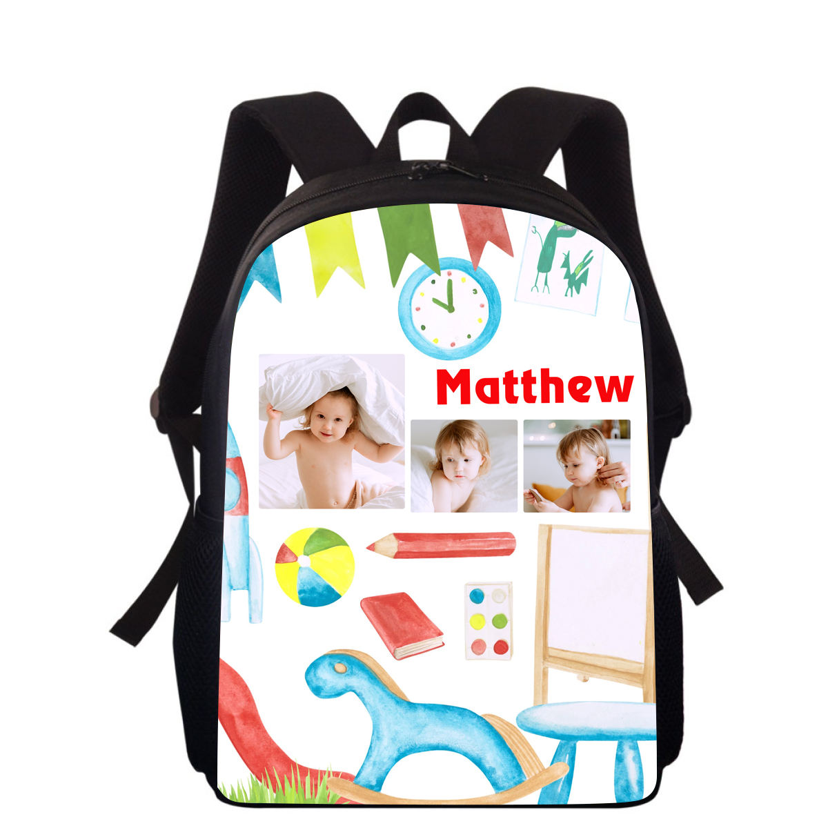 Sac à Dos Cheval de Troie pour Enfant 1 Prénom Personnalisé avec 3 Photos Sac maternelle