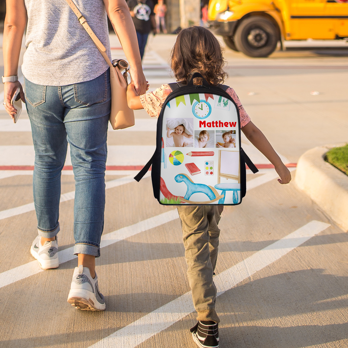 Sac à Dos pour Enfant 1 Prénom Personnalisé avec 2 Photos Sac maternelle
