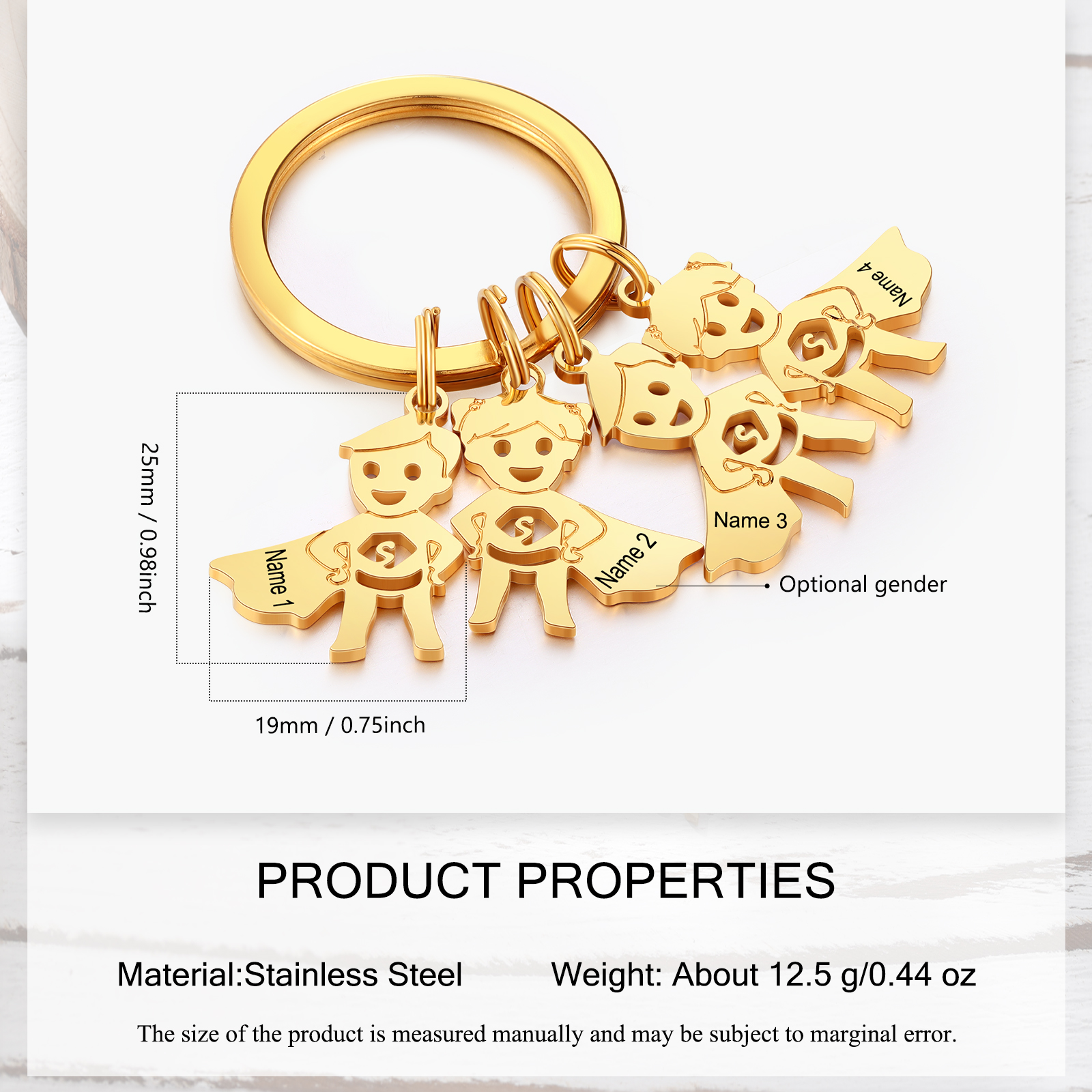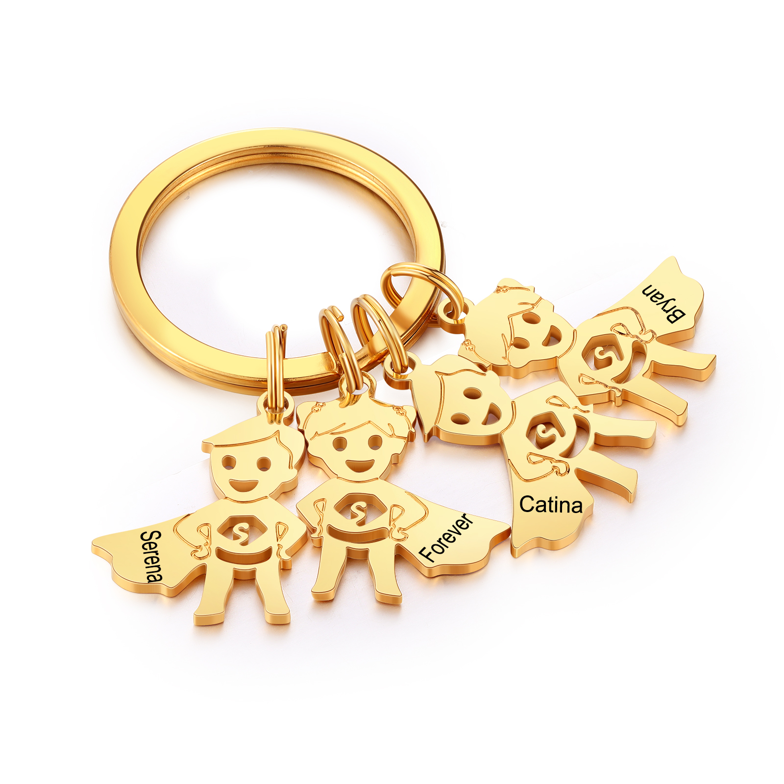 Porte-Clés 4 Prénoms Personnalisé avec Breloques 4 Enfants
