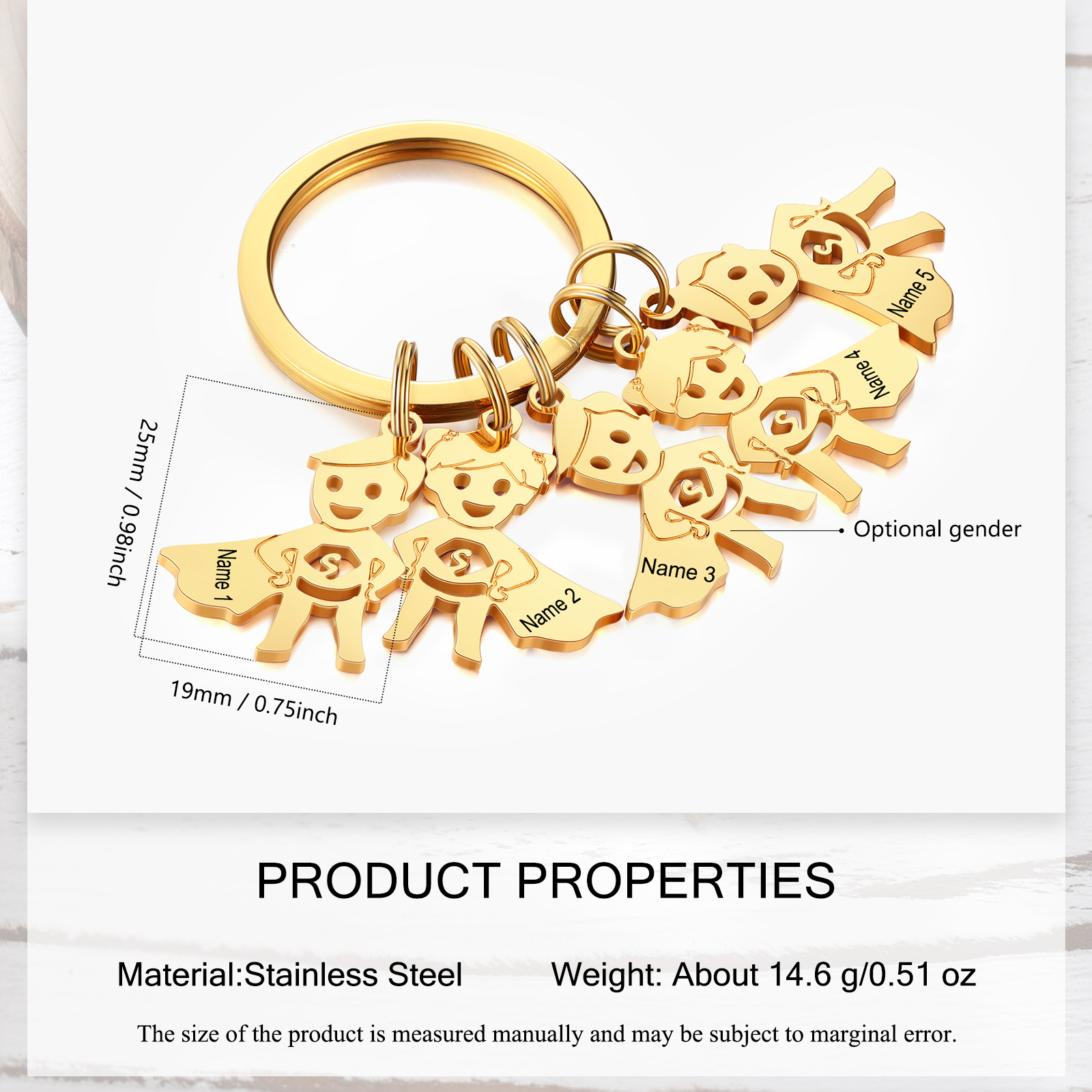 Porte-Clés 5 Prénoms Personnalisé avec Breloques 5 Enfants