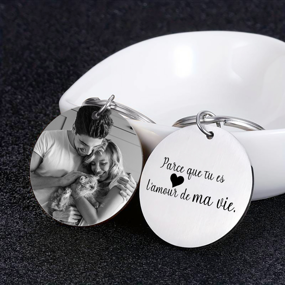 Porte-Clés Cuir Texte et Photo Personnalisées pour Couple | Jessemade
