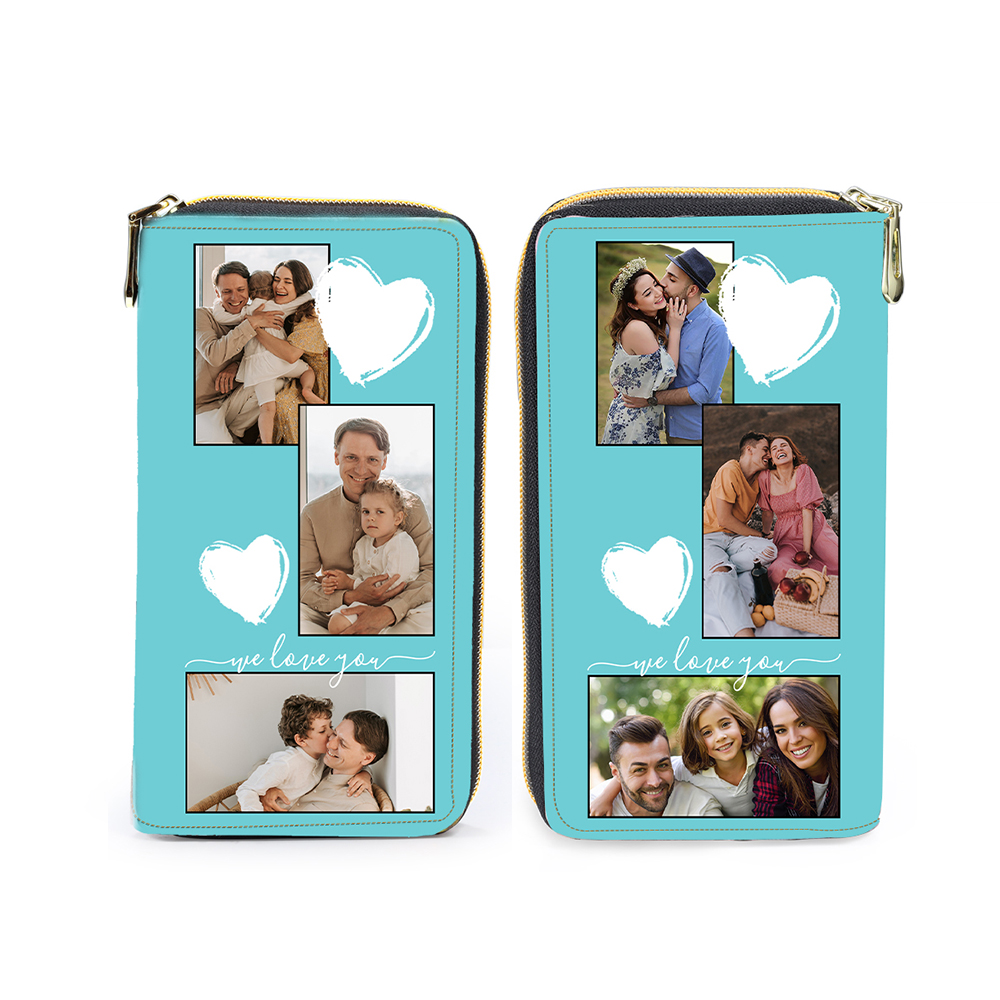 Portefeuille long en cuir PU personnalisé 6 photos