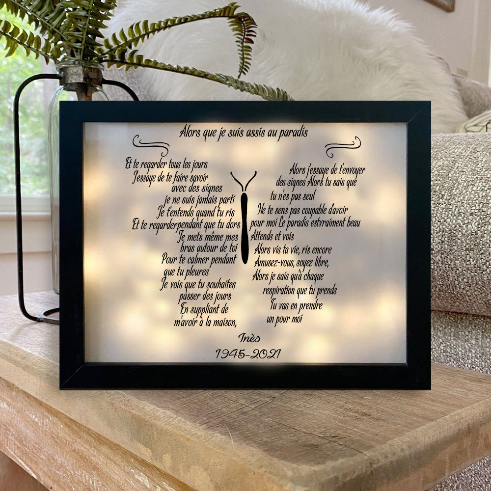 Lampe papillon prénom personnalisé avec date Cadre photo commémoratif