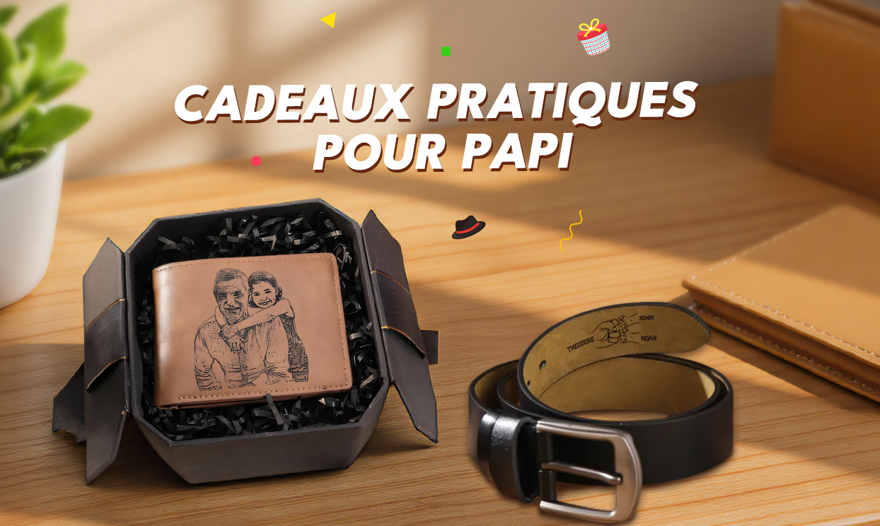 Pour une idée à petit prix, optez pour un porte-clés, un portefeuille ou une ceinture: ce sont des produits malins qui font plaisir sans exploser le budget. Un coffret compact peut aussi réunir plusieurs idées à prix doux, tout en gardant l’effet d’un présent premium. Papy profite d’accessoires utiles, et Jessemade proposera également des promotions de vacances pour vous assurer de pouvoir choisir un cadeau satisfaisant et abordable.