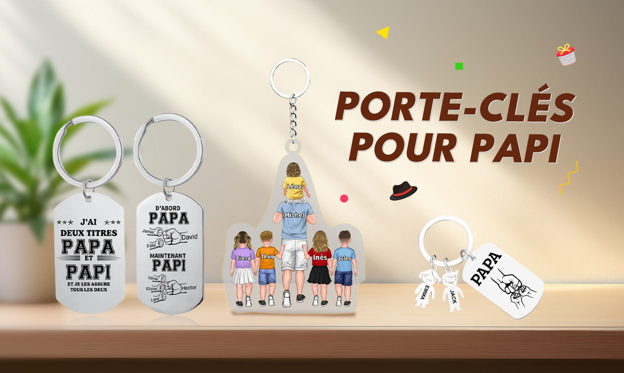 Pour cette occasion, misez sur des idées cadeaux qui parlent à papy et aux grands parents: des cadeaux personnalisés utiles et beaux. Notre sélection réunit des produits et accessoires comme un portefeuille, un porte-clés, un bracelet ou même une décoration. Chaque cadeau est disponible dans une variété de couleurs et de styles pour s'adapter à vos goûts et préférences. C’est l’idée parfaite pour papy: un objet simple, un prix clair, et tout ce qu’il faut pour créer des souvenirs qui durent.