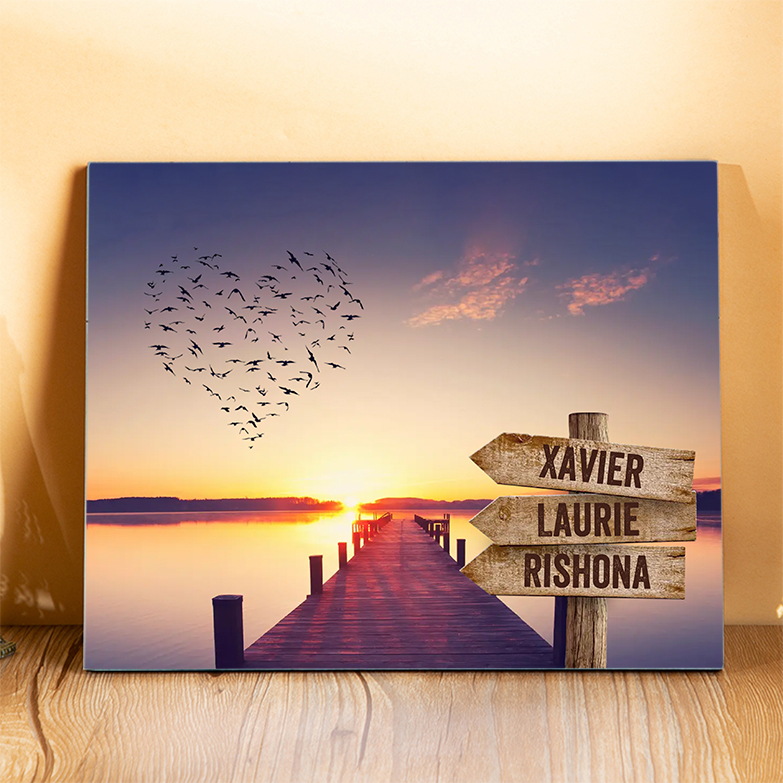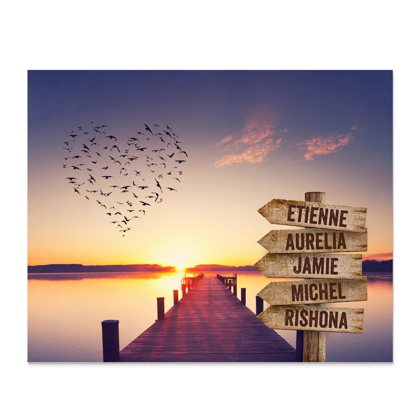 2-8 Noms Cadre Imprimé en Bois Famille Personnalisés