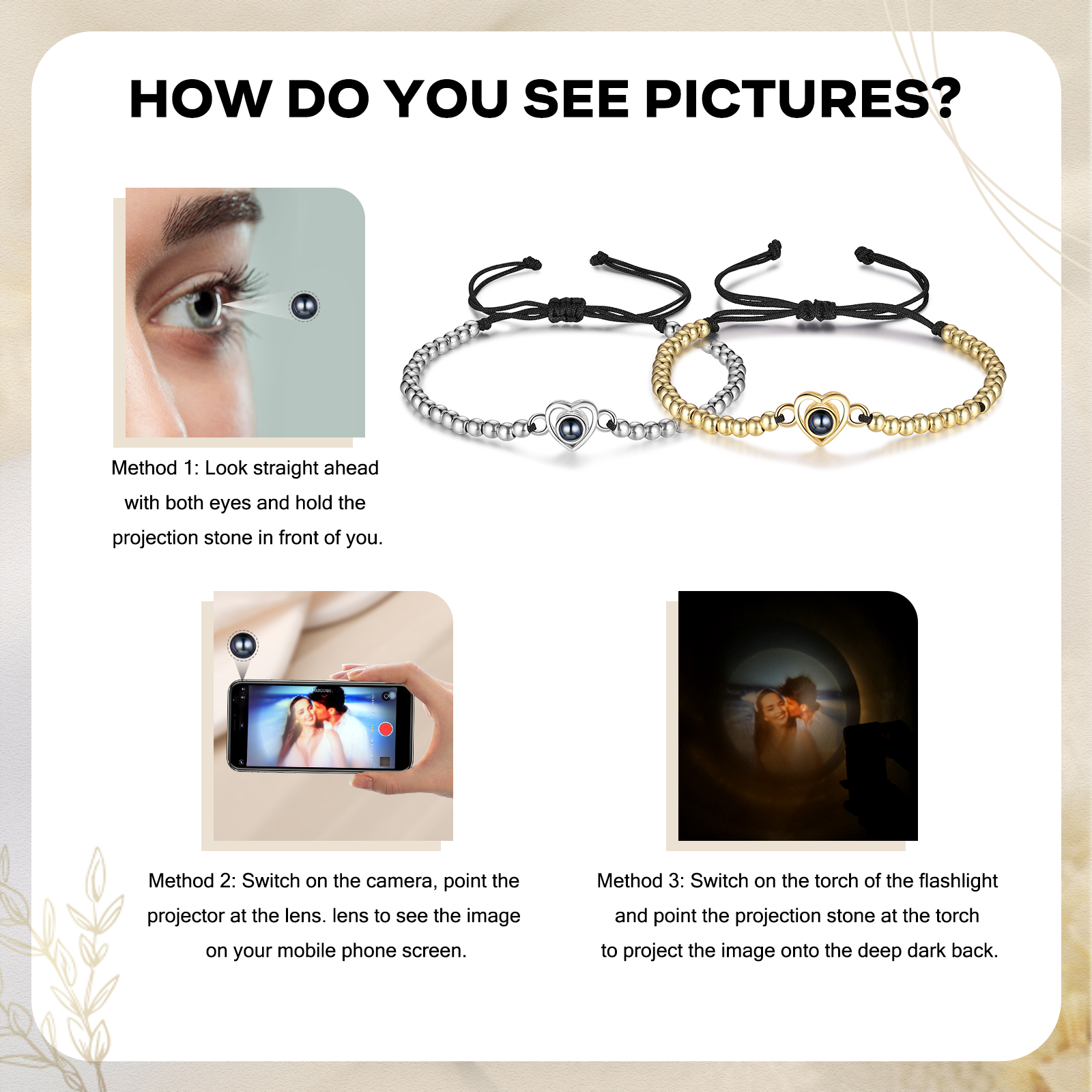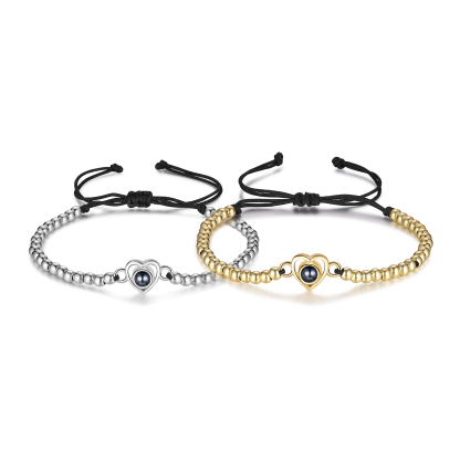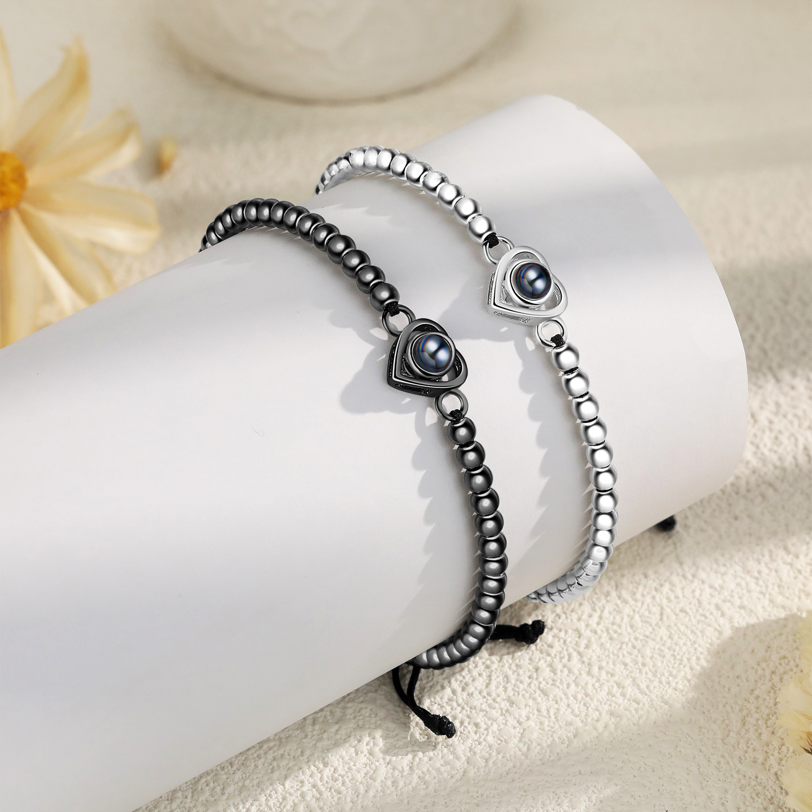 2PCS Bracelets Projection de Pierres Cœur 1 Photo Personnalisée