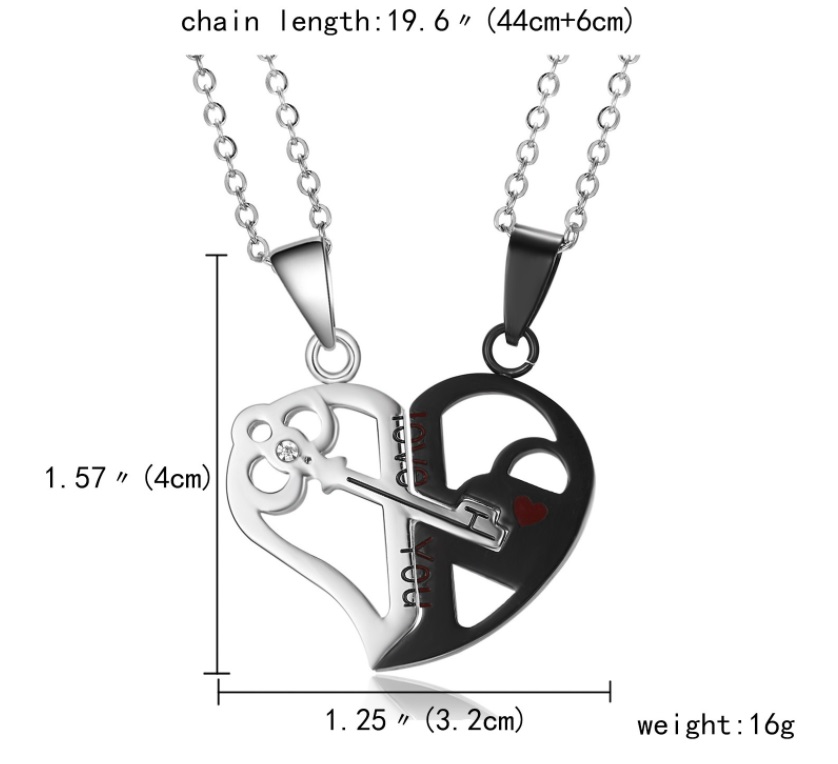 2PCS Collier de Saint-Valentin breloque Coeur pour Couple