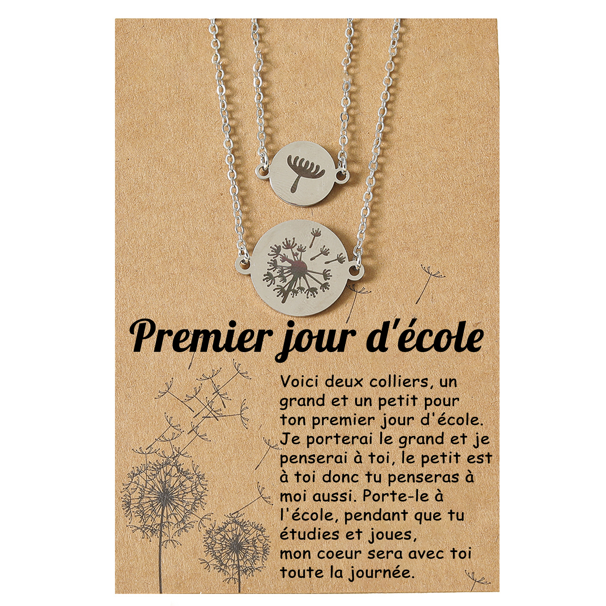 2PCS Collier Ensemble Pissenlit - Cadeau Rentrée Scolaire Premier jour d’école