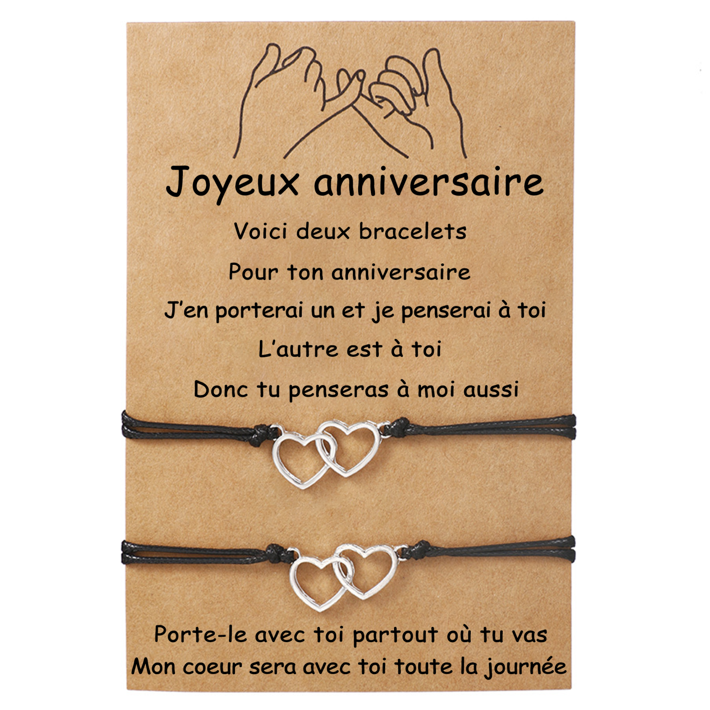 2PCS Ensemble de Bracelets Cœur - Cadeau Anniversaire
