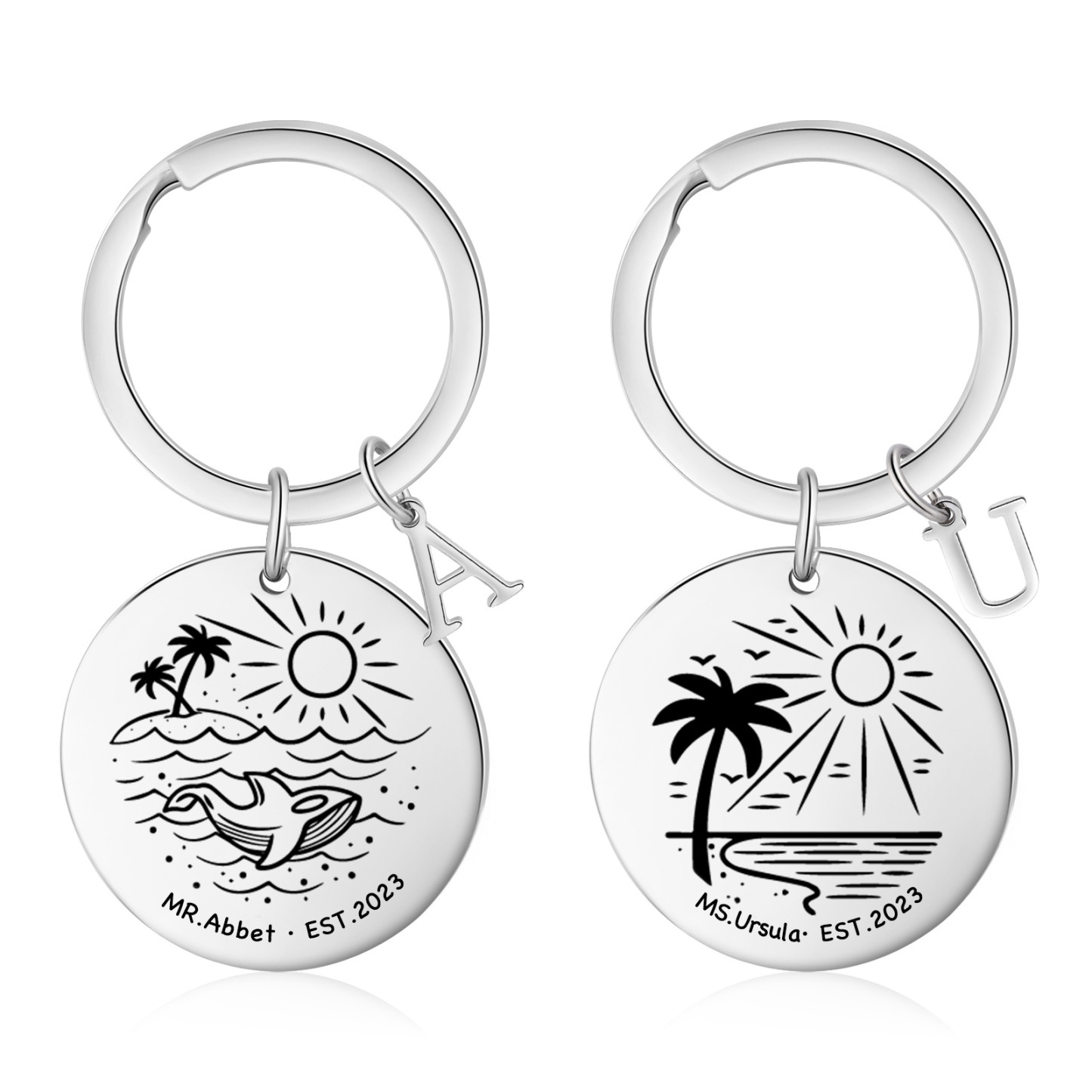 2PCS Porte-Clés Rond 2 Prénoms et 2 Lettres Personnalisés avec Année