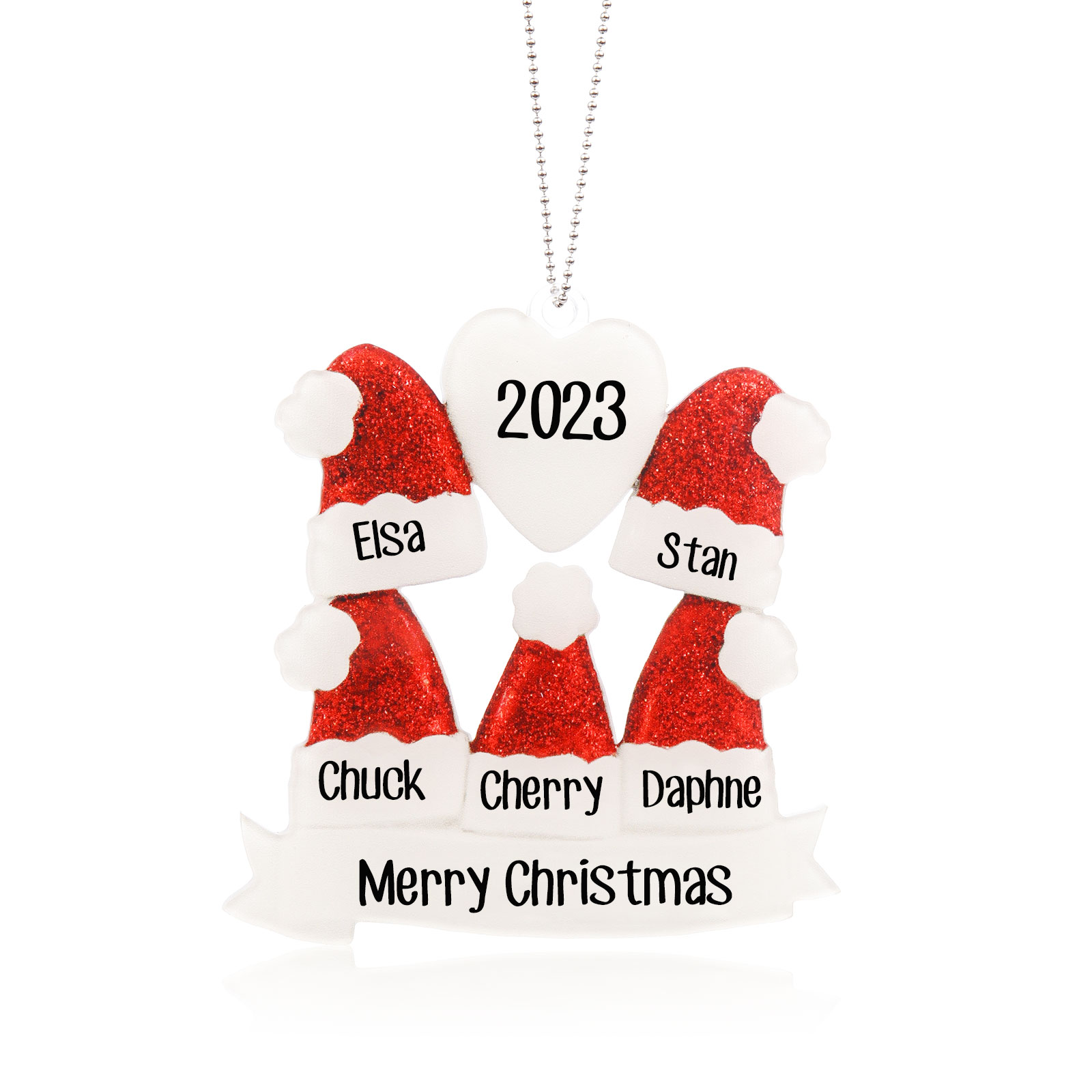 3-6 Noms Décoration Sapin Noël Acrylique Personnalisés avec Texte et Année Chapeau de Père Noël