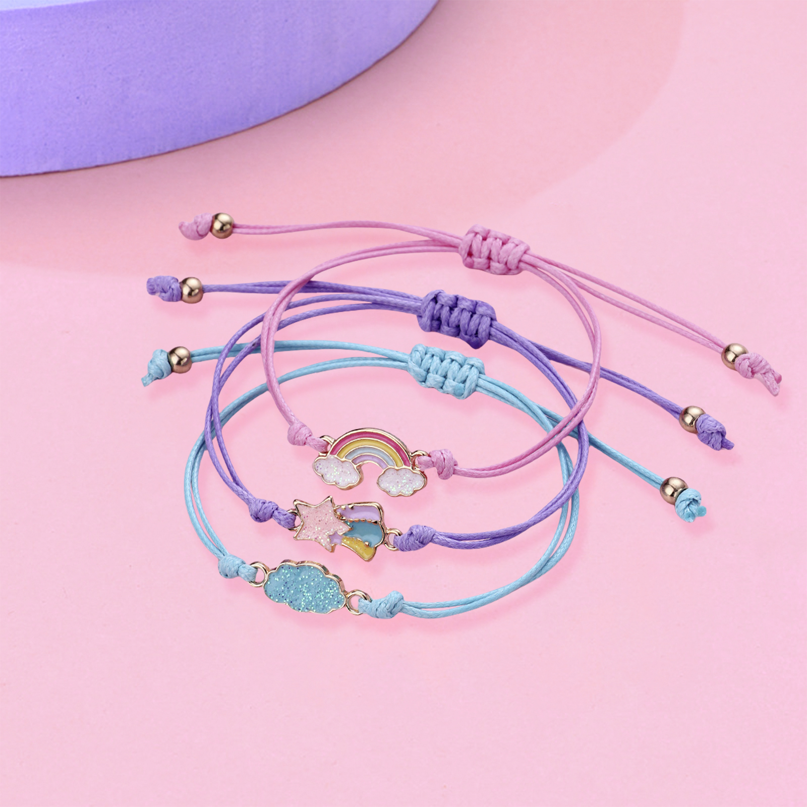 3PCS Ensemble de Bracelets Arc-en-ciel étoiles et nuages Corde élastiques - Cadeau Rentrée Scolaire Premier jour d’école