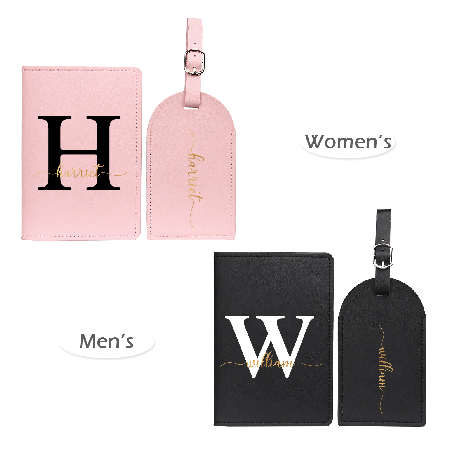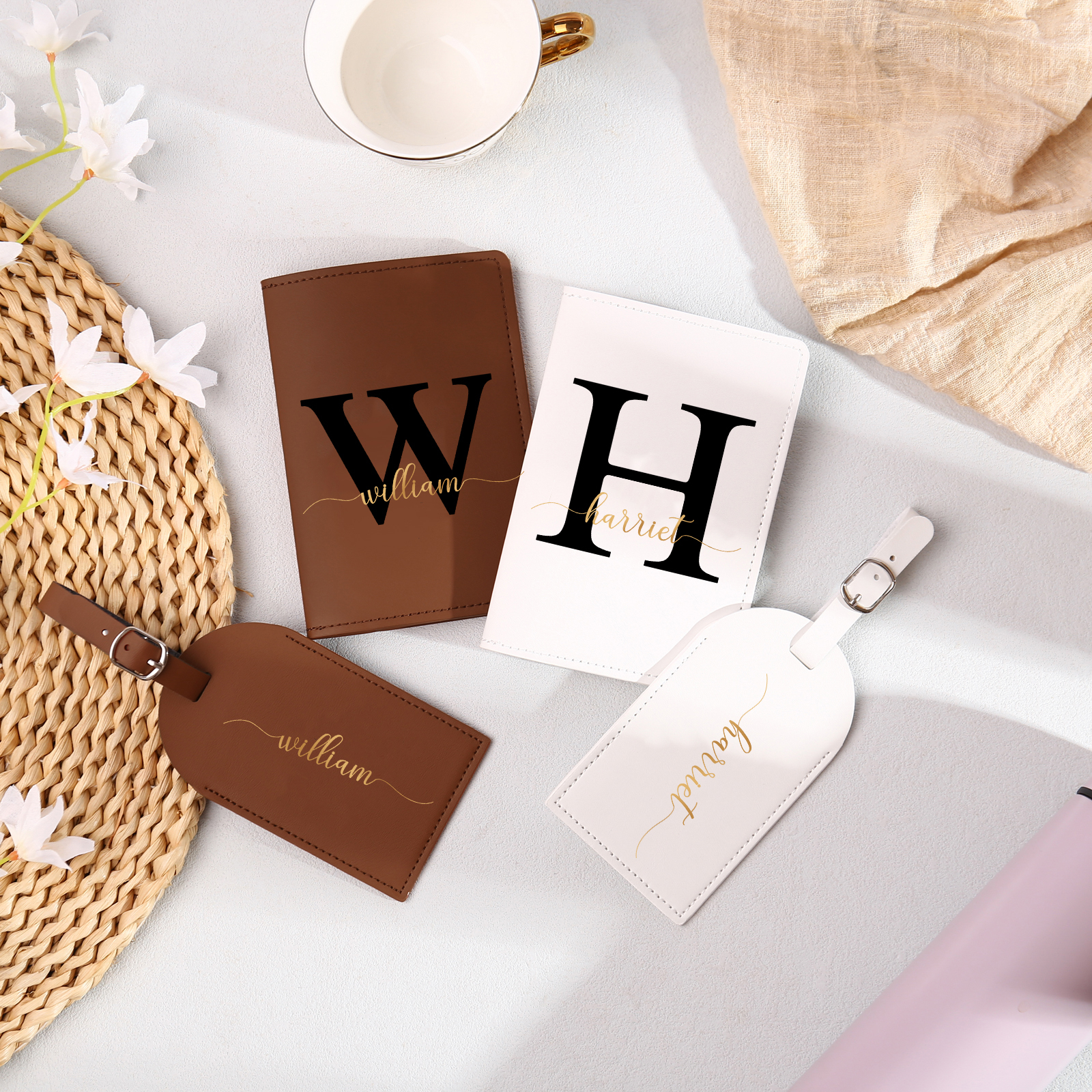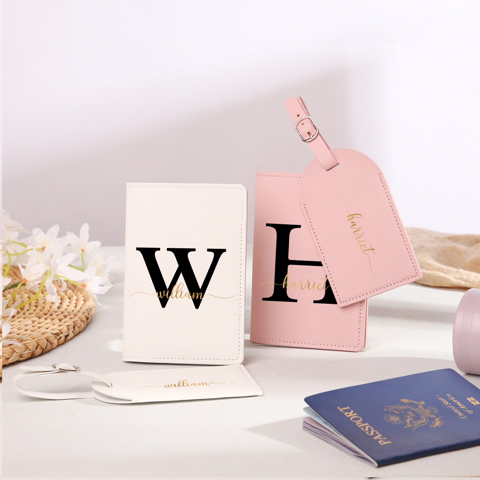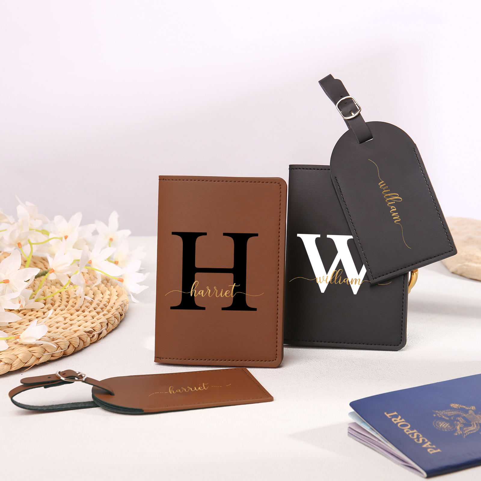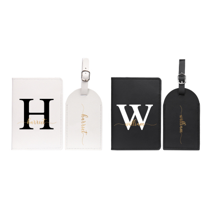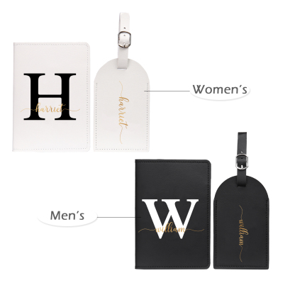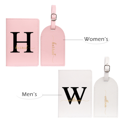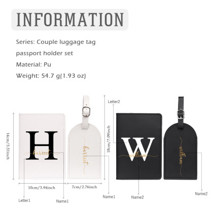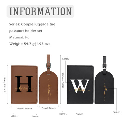4 PCS Couple Mode Porte-Passeport et Étiquette de Bagage 2 Prénoms et 2 Lettres Personnalisés