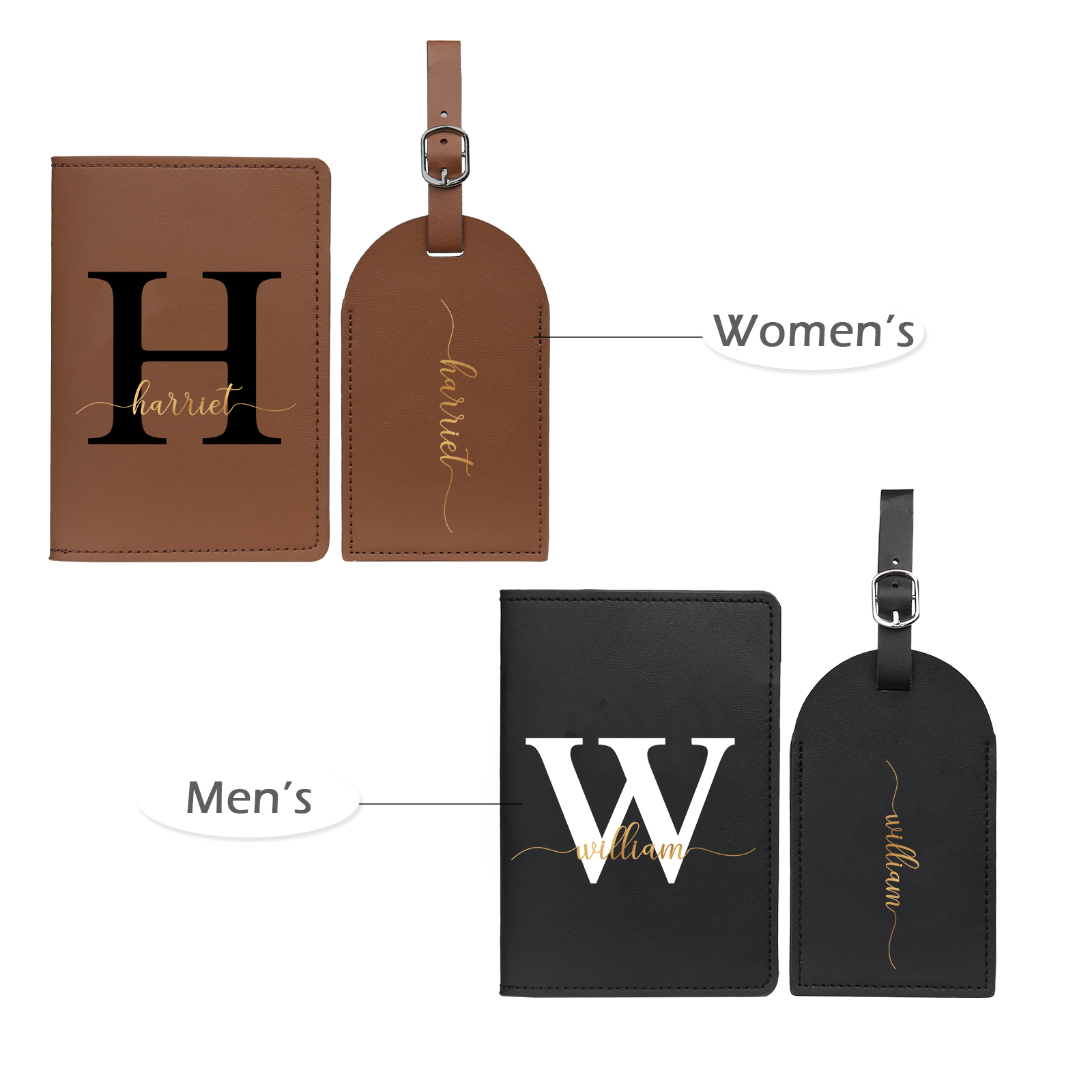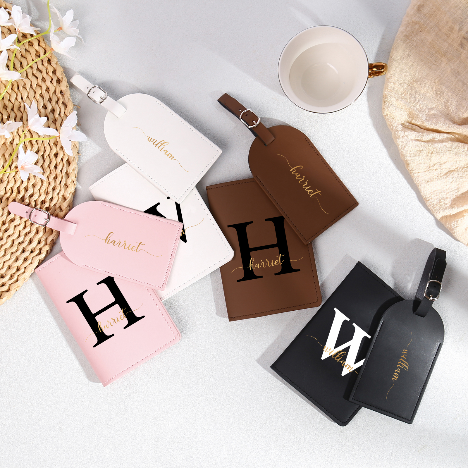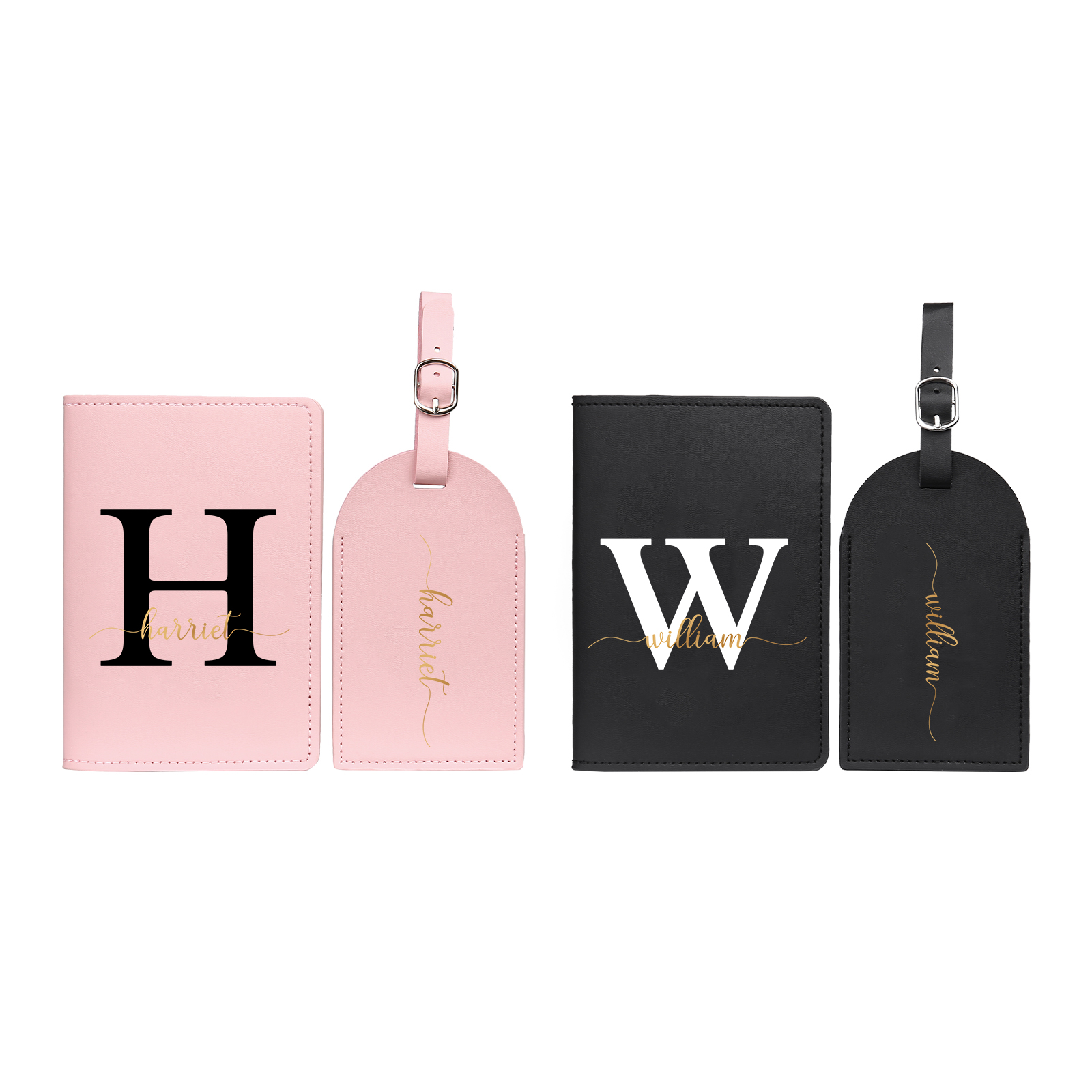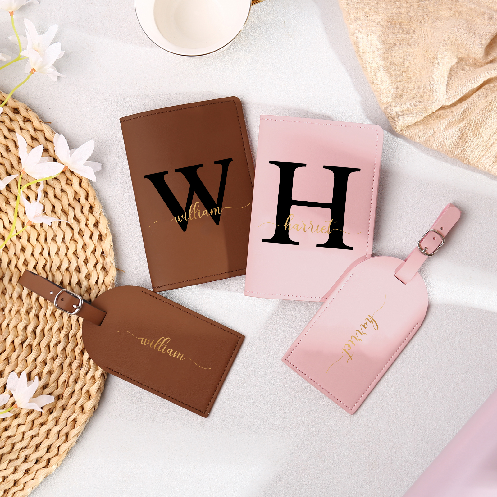 4 PCS Couple Mode Porte-Passeport et Étiquette de Bagage 2 Prénoms et 2 Lettres Personnalisés