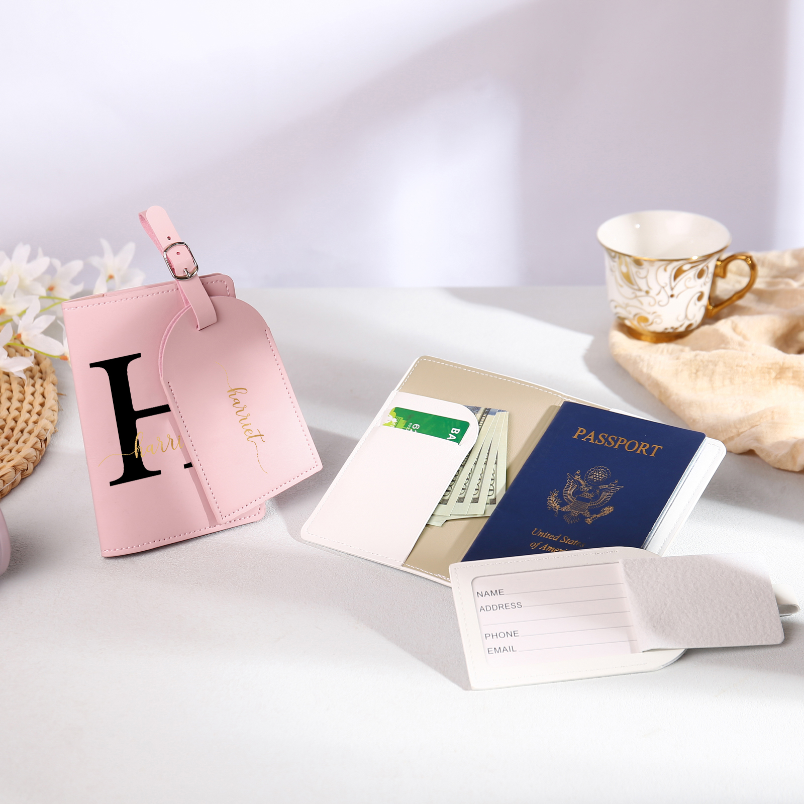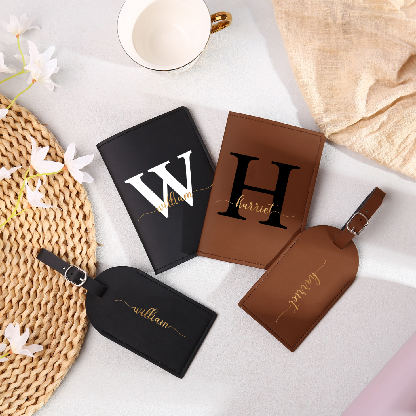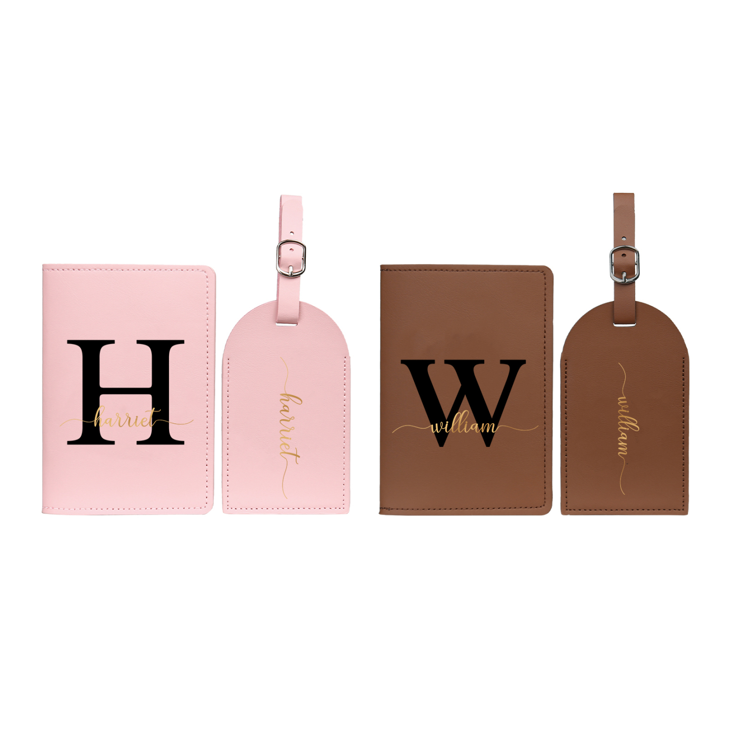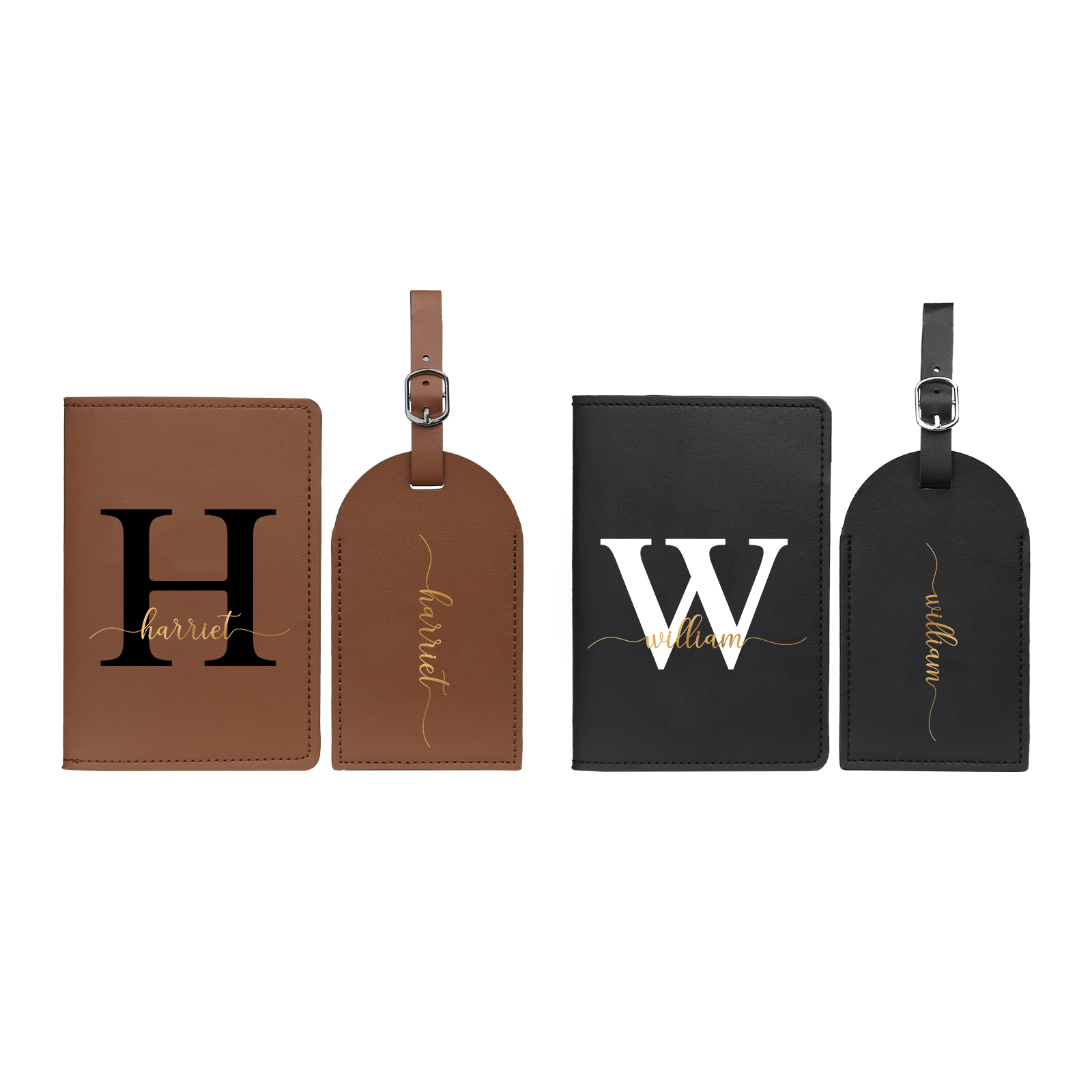 4 PCS Couple Mode Porte-Passeport et Étiquette de Bagage 2 Prénoms et 2 Lettres Personnalisés
