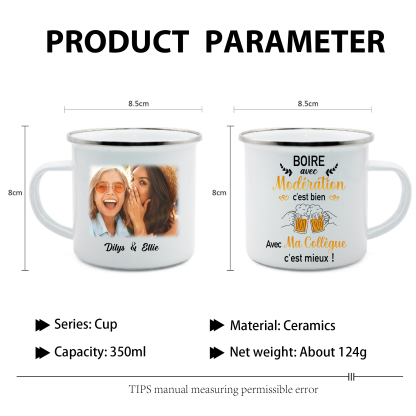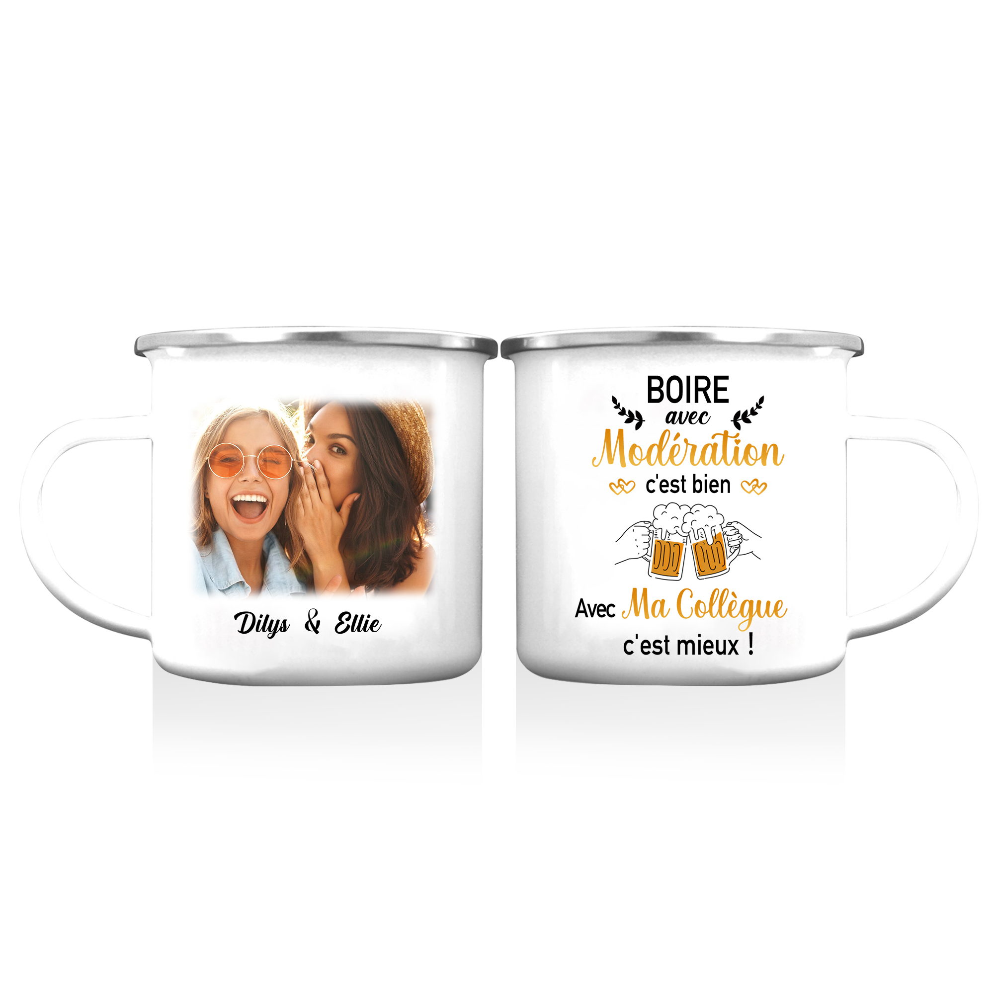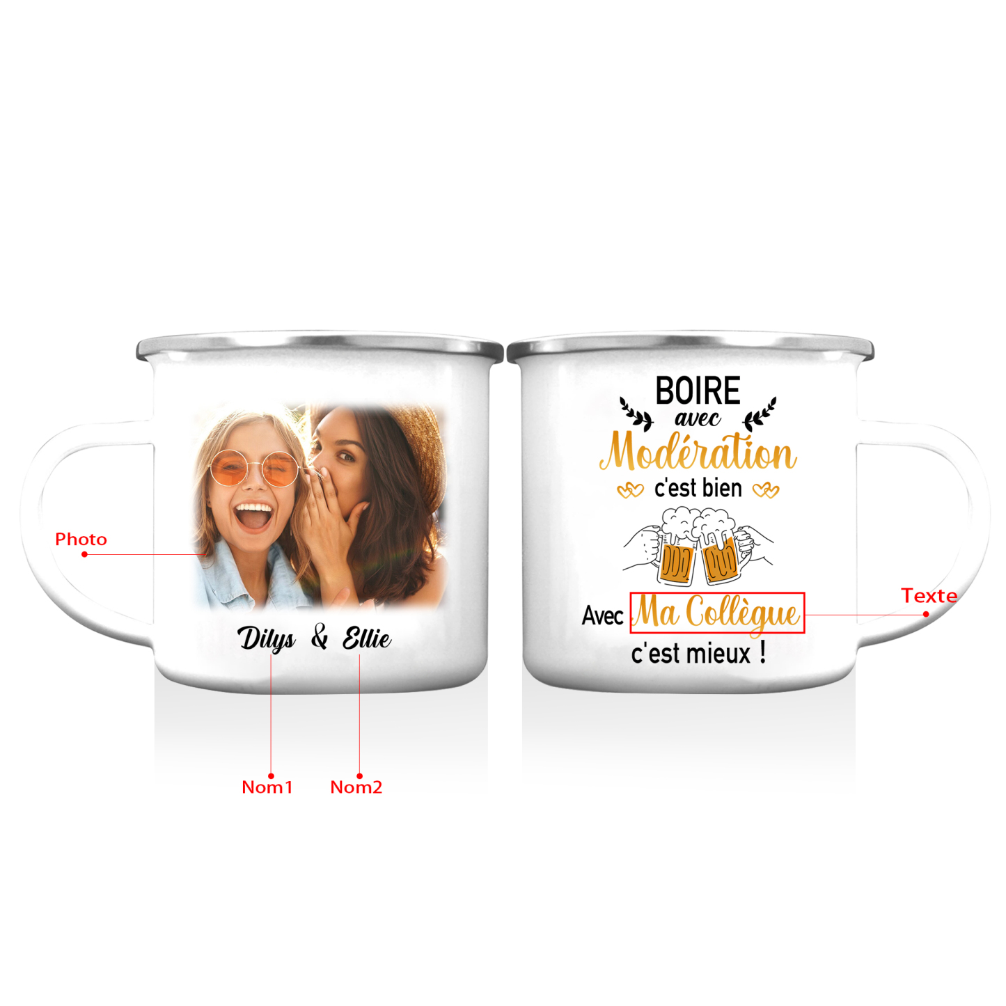 À Ma Collègue - Tasse émaillée 2 Prénoms et Texte Personnalisés avec Photo