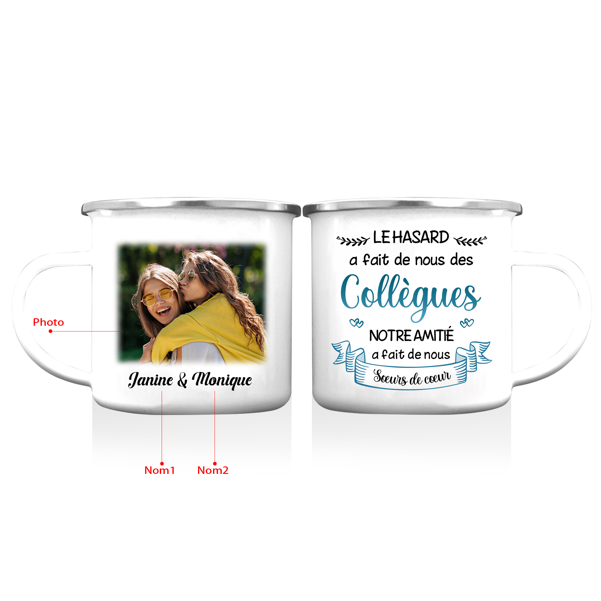 À Ma Collègue - Tasse émaillée 2 Prénoms Personnalisés avec Photo