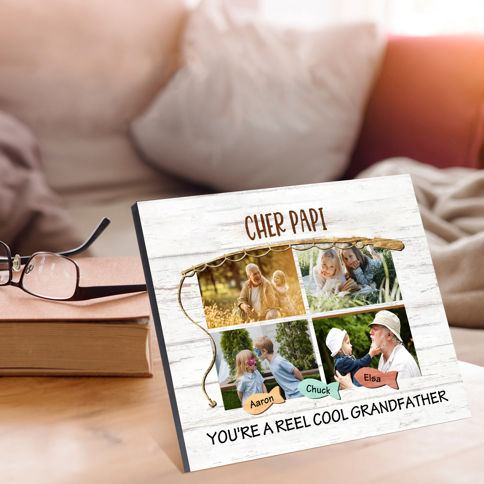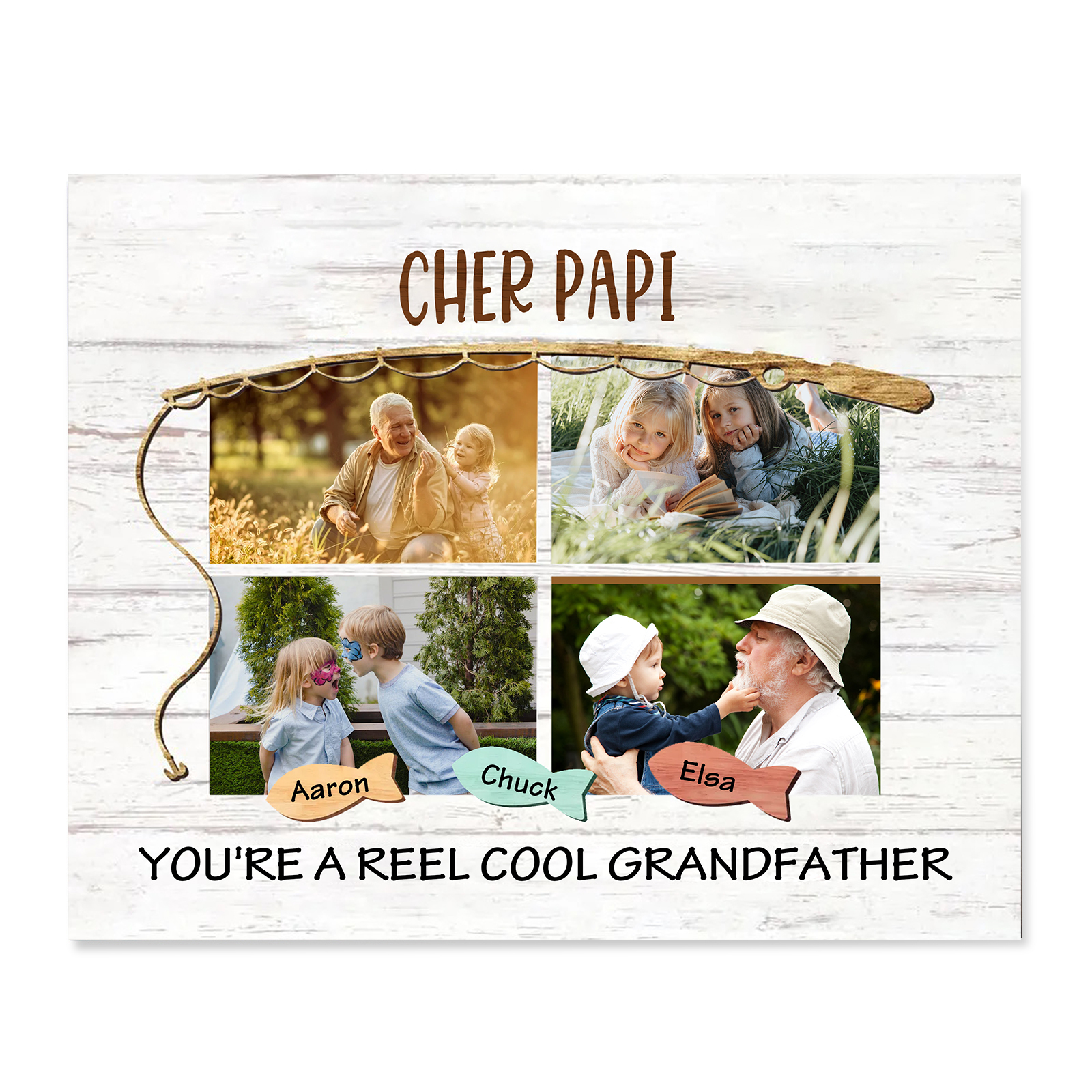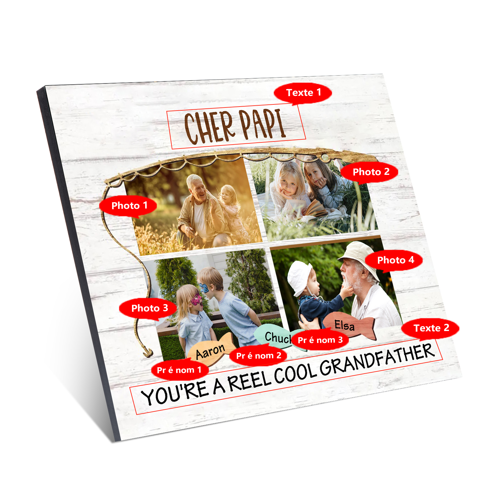 À ma Famille - Cadre en Bois 3 Prénoms et 4 Photos Personnalisés avec 2 Textes