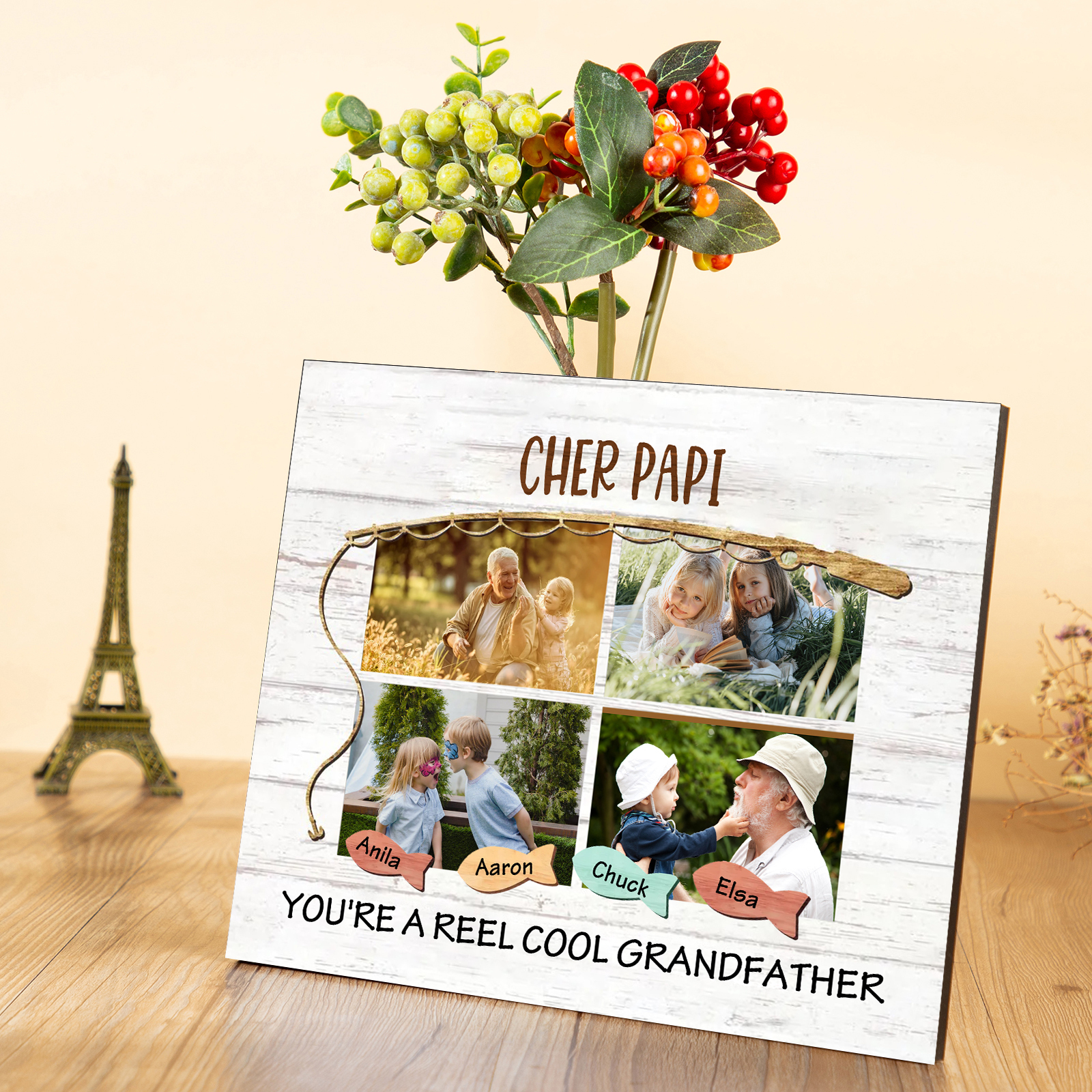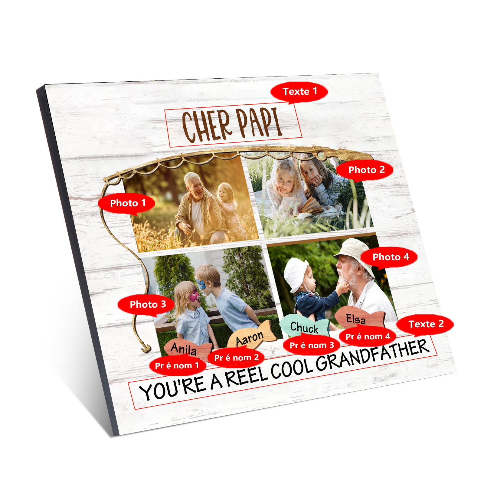 À ma Famille - Cadre en Bois 4 Prénoms et 4 Photos Personnalisés avec 2 Textes