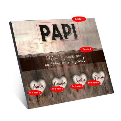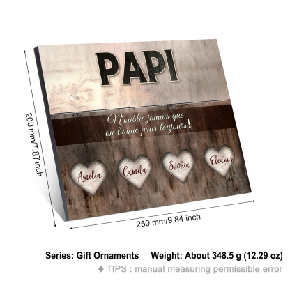 À ma Famille - Cadre en Bois 4 Prénoms Personnalisés avec 2 Textes