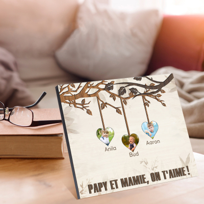 À ma Famille - Cadre en Bois Arbre de Vie 3 Prénoms et 3 Photos Personnalisés avec Texte